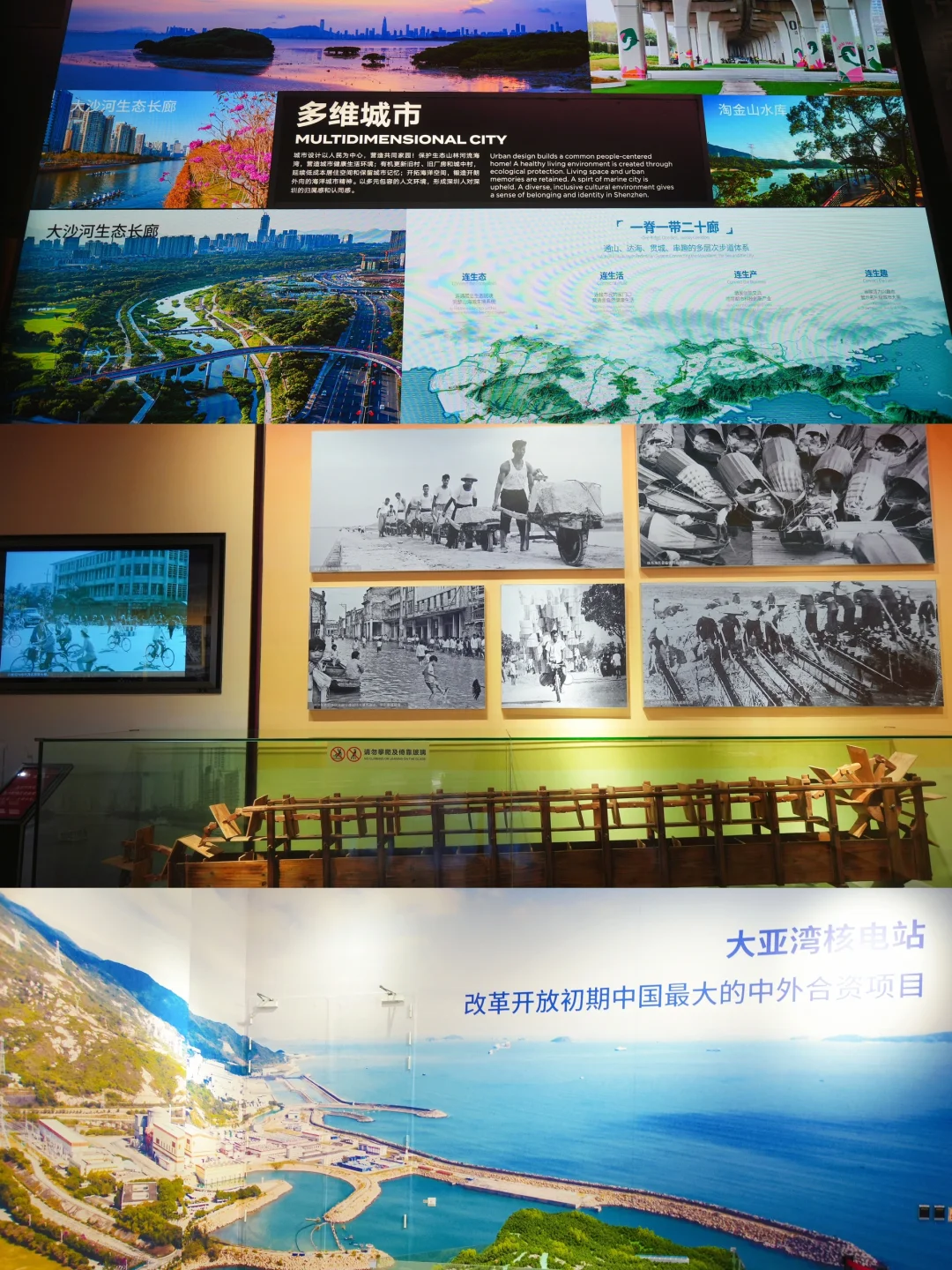 建筑外观就像未来飞船,超好拍📸 馆内“大潮起珠江”展览必看!老照片、旧物件静静躺着,一秒穿越到深圳渔村时代,热血又好哭😭 北馆的动态沙盘更绝,能直观看到深圳从过去到未来的变化,城市远见狠狠惊艳!
