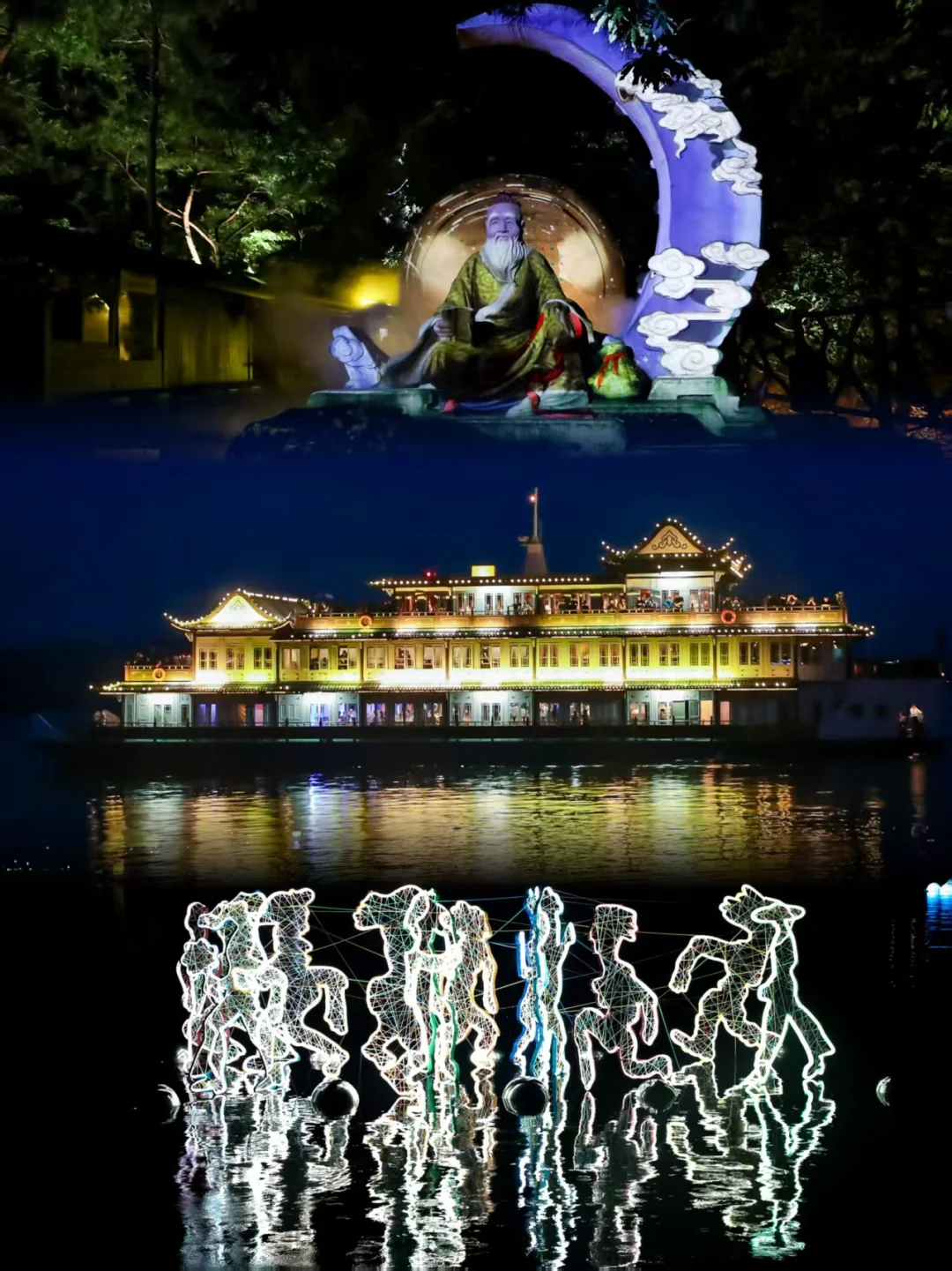 ✅晚上也不无聊!骑龙巷像“小重庆”🏮,文创店、小吃摊超有烟火气,🚢坐夜游游船边吃边看湖景,惬意到不想走!