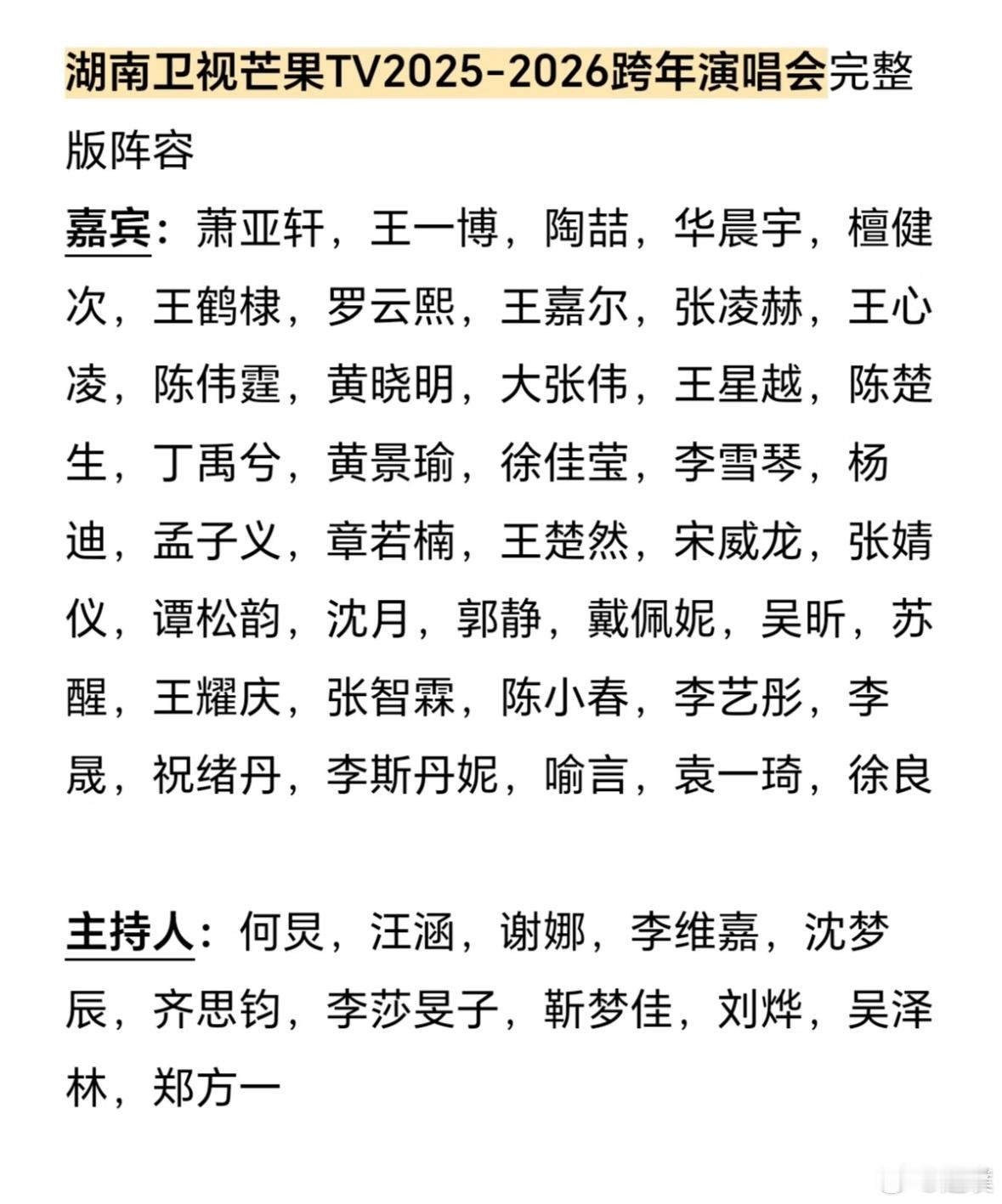 湖南卫视跨年演唱会官宣网传湖南卫视跨年演唱会阵容,你最期待谁?