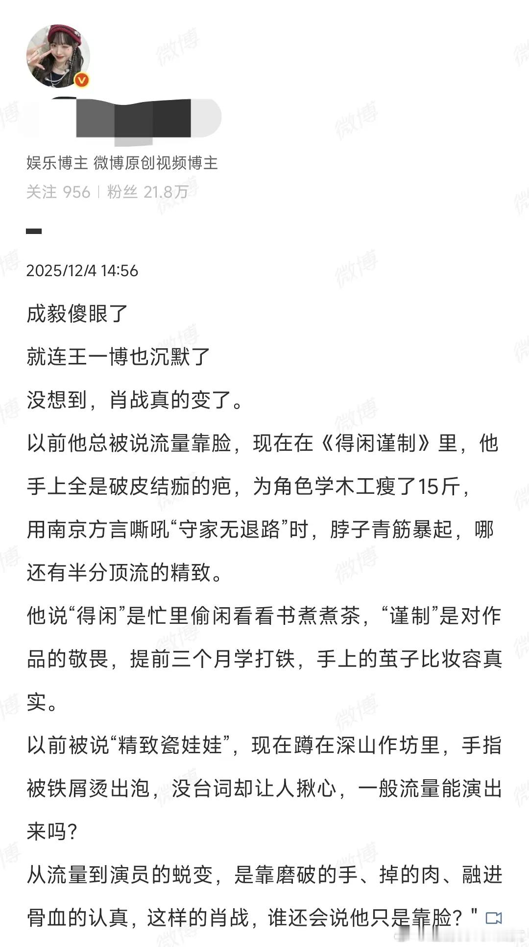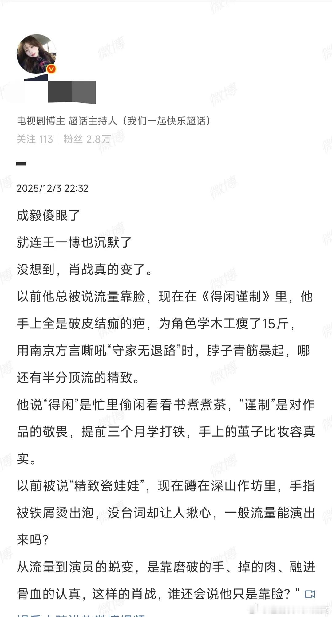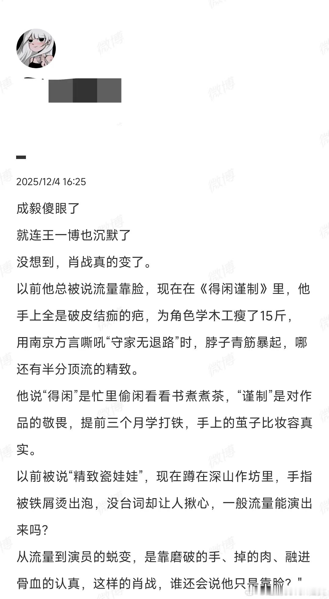 成毅傻眼了就连王一博也沉默了没想到,肖战真的变了。以前他总被说流量靠脸,现在在《