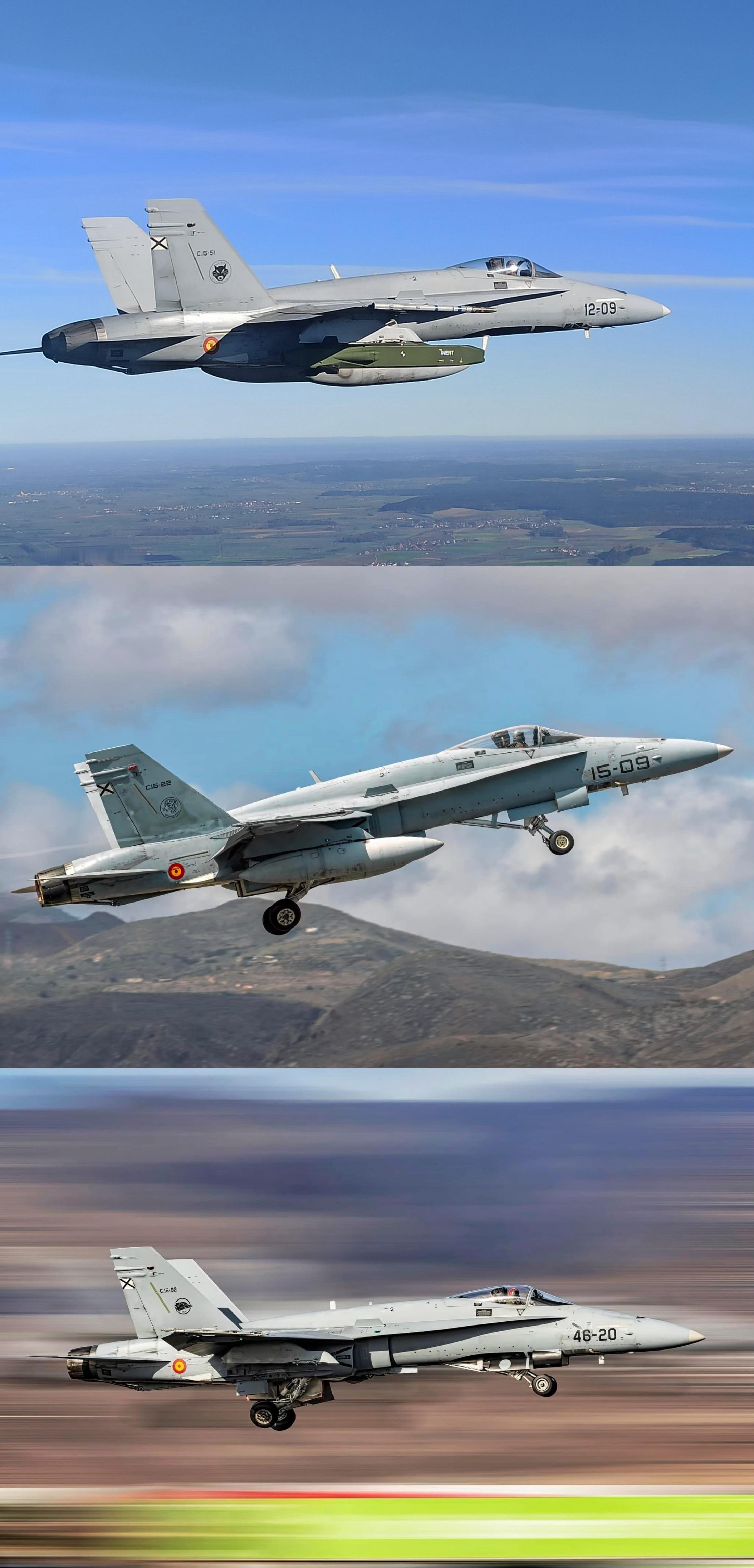 西班牙空军/空天军EF-18大黄蜂中队识别指南军用飞机信息汇 中西双语编制西班牙空军共采购并接收了72架EF-18A/B(F/A-18A/B的西班牙出口型,其中单座A型60架,双座B型12架;升级到F/A-18A+/B+水准后的型号称为EF-18M/BM),编为2个联队(第12和第15联队),下辖5个中队(含1个训练中队)。另外还有24架采购自美国海军/陆战队的二手F/A-18A大黄蜂战机,也升级到了A+标准,编为1个中队:第11联队第111中队(1995-2000年);在该中队接收台风战机后,这批大黄蜂又转给了第46联队第462中队,驻地位于距离本土1000多公里的加那利群岛。任务上,这6个中队各有侧重:第121中队侧重对地对海打击,第122中队和第151中队侧重空优和拦截,第152中队侧重压制敌防空(SEAD),第153中队侧重转换训练(OCU),第462中队守备加那利群岛。现役数量上,这总计96架大黄蜂战机中,按《空军月刊》2017-2018年间的说法,72架EF18中有6架坠毁,24架F18A中有4架坠毁,现役85架(1架去向不明)。而2017年10月摔的那架EF18M,《空军月刊》并未及时统计到,再考虑到2023年5月和2024年10月又各摔了1架EF18M,西班牙空军现役F18总数应为82架;网上也有81架的说法(又1架去向不明),考虑到有退役封存和做教具等可能性,保守估计81架这个数字应该较为准确。之前微博(网页链接)提到西班牙空军战斗机部队同联队下的中队共用飞机,除下辖1个中队(第462中队)的第46联队以外,其战机垂尾个性标识均为联队徽章。在这种情况下要判断中队,除非战机本身有中队特别涂装,在战机隶属于联队的情况下只能通过看飞行员胸章来判断飞行员所属中队;图1就是包含各联队和中队徽章的编制表供大家当作识别指南参考。加上上期(网页链接)的西班牙空军台风中队编制及识别指南,西班牙空军战术机队编制就齐了,连载完结,撒花🎉。最后:西班牙空军下了45架台风Tranche 4/4+/5的订单,首当其冲就要换掉老旧的二手F18A+,所以第46联队第462中队今后就要从大黄蜂中队变台风中队了。虽然说该中队有望成为西班牙空军第一个“三代半”战机中队(听起来有点可怜),但从今年最新的发展趋势来看,新的台风Tranche 4应该会首装第14联队,然后再把第14联队的老台风给第46联队第462中队(如果属实,那该中队属实是二手机专业户,空军养老院)。总之,45架新台风也不止能换掉1个中队,大黄蜂战机在西班牙空军作战序列中已渐行渐远……预告:更新到现在发现去年更了德国和英国台风编制和识别指南,今年又更了西班牙台风编制和识别指南,众所周知台风战机来自英德意西,这要是接下来不更意大利台风编制和识别指南,有点说不过去了。