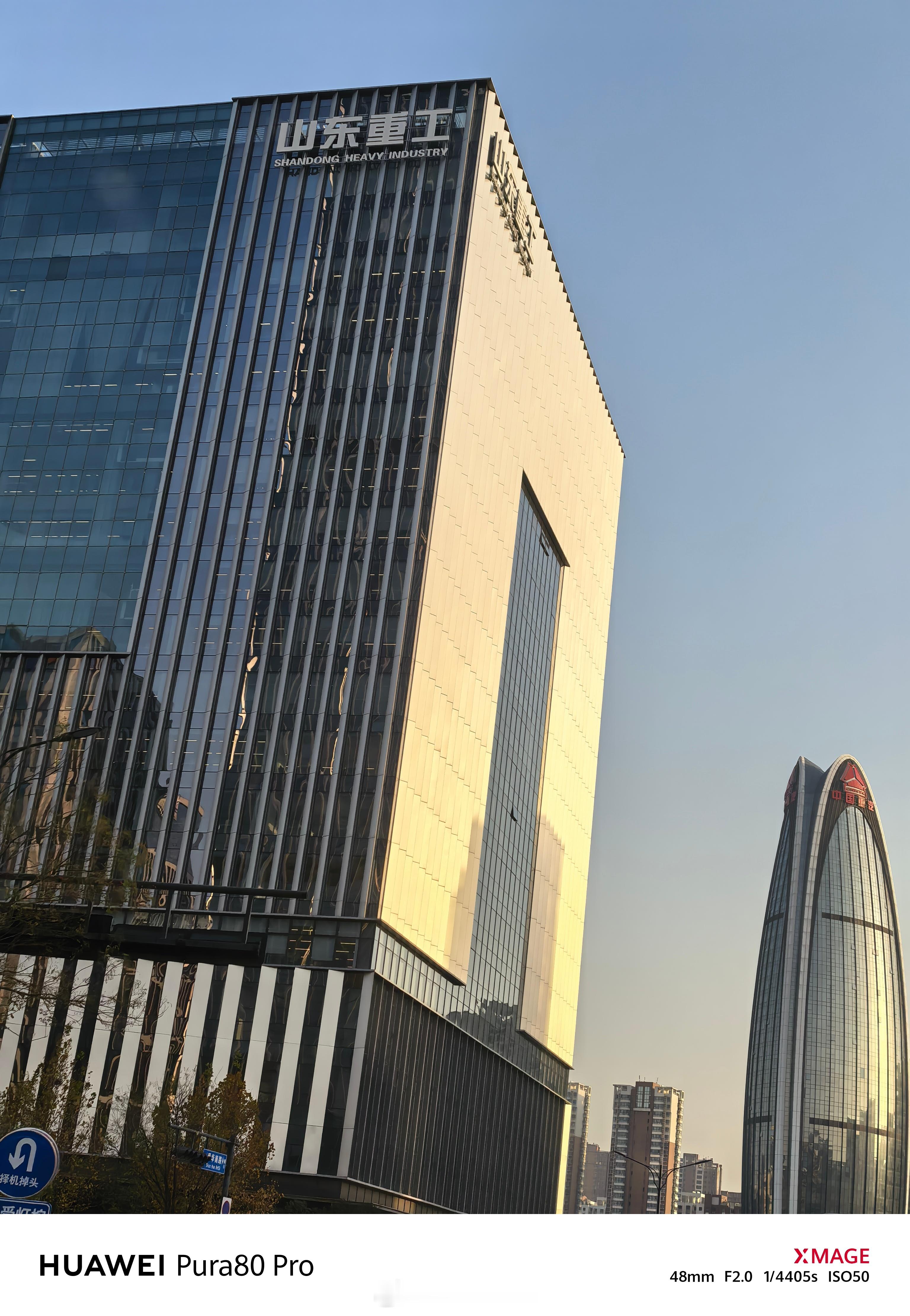 济南街景,一切都很北方,绿牌车也很少。这种情况下,突然出现一个科幻的建筑,就特别引人注册。原因那是中国重汽和山东重工的大楼。 济南