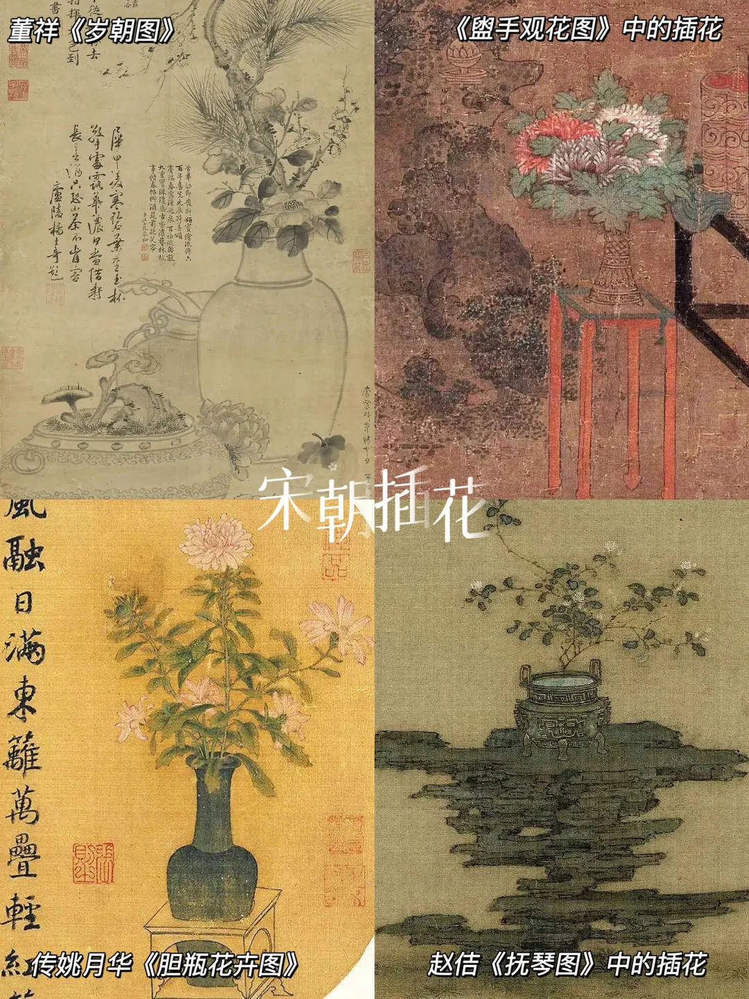 🌸随着宋朝文化生活的蓬勃发展,插花、焚香、点茶、挂画成为生活四艺。