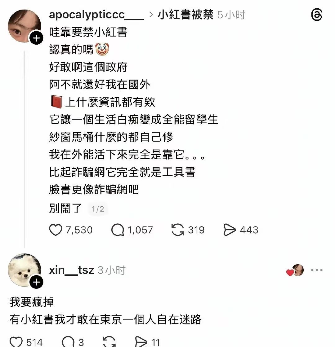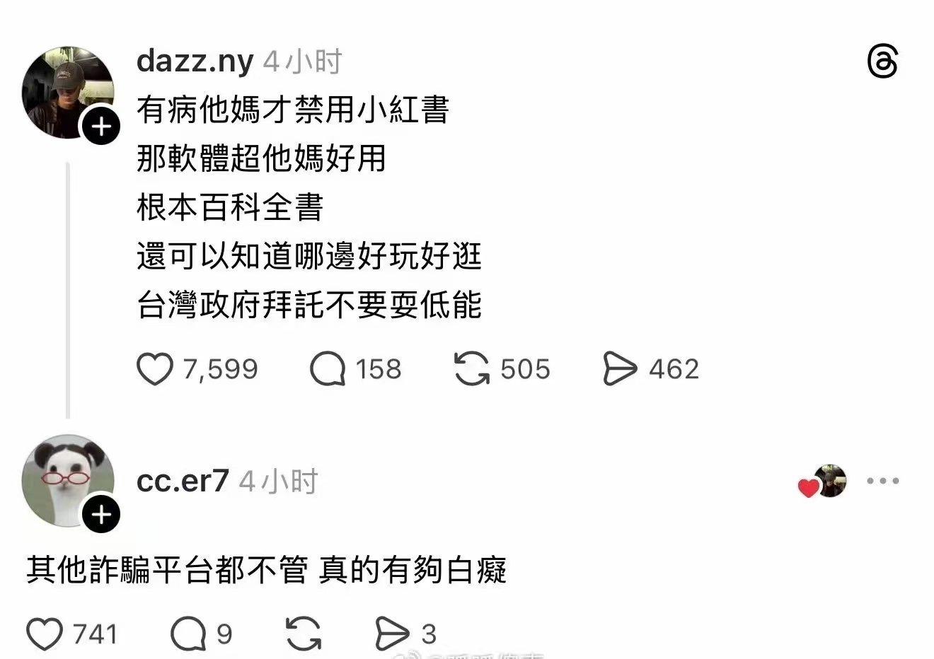 哦吼,没想到台湾网民对小红书这般深深依恋。。。😂