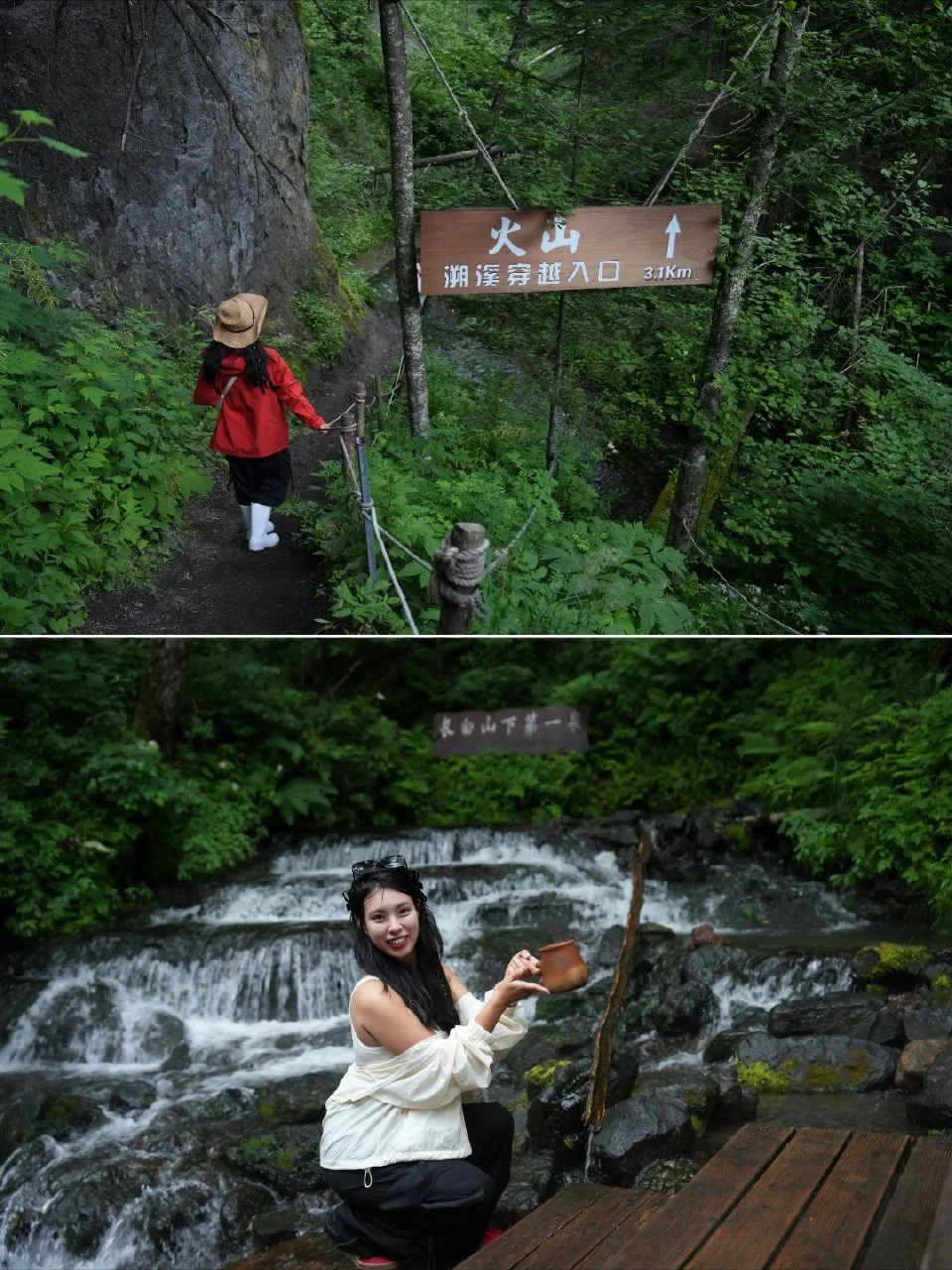 3公里的水路,深浅不一,景区贴心准备了软底雨鞋和长木棍,一路向导讲解火山灰岩石,超有趣!