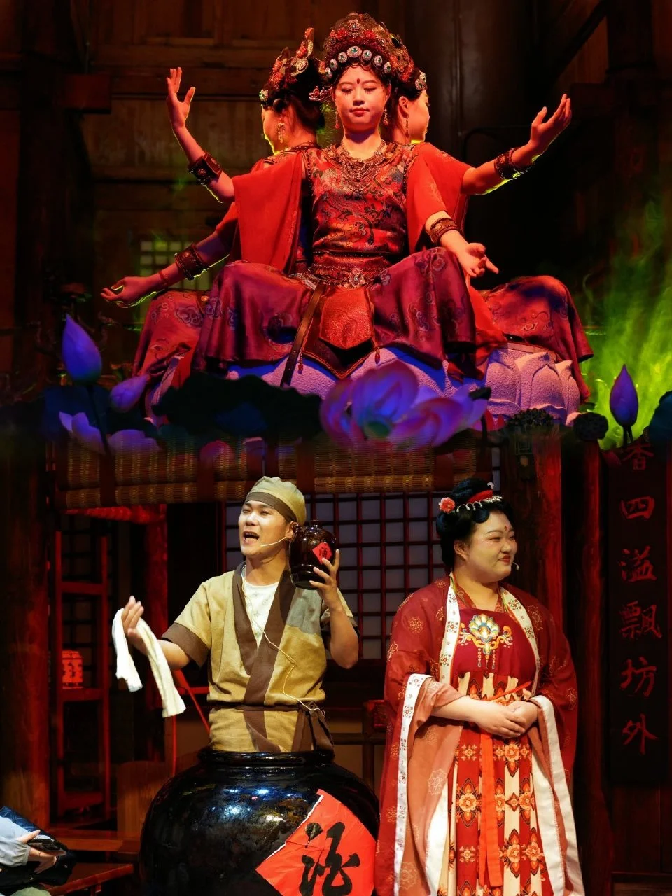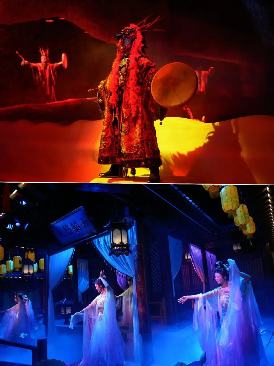 一秒穿越金代,木质楼阁重施朱红,青石板路+红灯笼+雕梁画栋,随手拍都是古风大片,更有沉浸式演艺必看,重头戏天池剧场(萨满祭司为你祈福)、四时捺钵(超喜欢金代肌肉男小哥哥为你表演舞蹈)