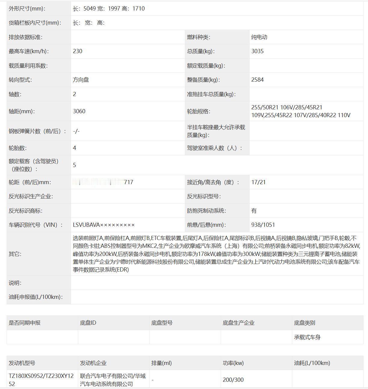 上汽奥迪AUDI E7X申报图来了 车长:5049,轴距:3060有单电机后驱版