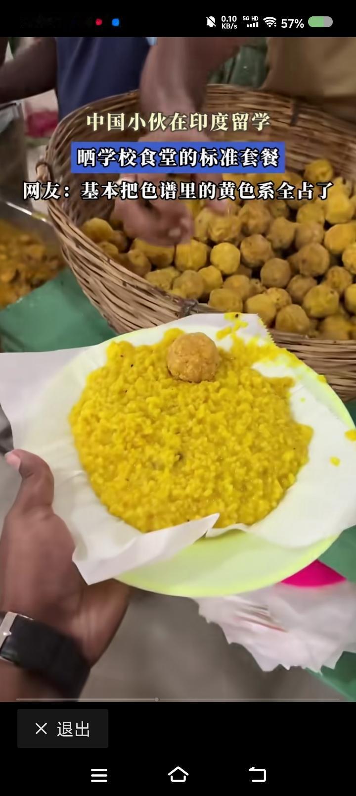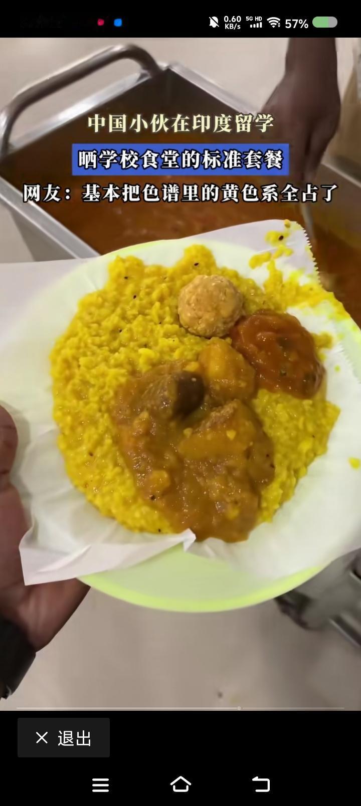 有人去印度留学?—— 据报道,中国小伙去印度留学,晒午餐。菜系特色:黄,稀。 点评: 一、有中国游客也晒过印度的饭。咋想的? 二、印度真实状况如何?我感觉那是钢筋水泥垒成的原始部落。
