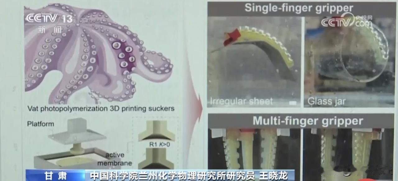 我国首款自适应水凝胶仿生吸盘问世 最近,中科院兰州化学物理研究所传来好消息。国内首个人工智能水凝胶仿生吸盘诞生了!这玩意儿不仅能像章鱼触手一样灵活抓握,还能在深海水压、复杂地形中稳稳“拿捏”各种物体,堪称科技界的“灵巧手”。 科研人员们灵感,来自海洋生物界的“抓取大师”章鱼。章鱼吸盘能紧紧吸住湿滑的礁石,甚至轻轻抓起脆弱的鱼虾,关键就在于它柔软又坚韧的材质和智能贴合能力。团队花了数年时间,终于研发出一种特殊的水凝胶材料。既像果冻一样柔软,又能扛住拉扯撕扯,完美模拟章鱼触手的“皮肤”。更厉害的是,他们用3D打印技术造出布满微型通道的吸盘结构,像给吸盘装上了“智能大脑”。遇到不同物体时,吸盘能自动调整贴合角度和吸力,无论是粗糙的岩石、光滑的金属,还是脆弱的豆腐、生鸡蛋,都能稳稳抓住,不伤分毫。 以前水下机器人抓东西总有个老大难。要么抓不牢,要么用力过猛把物体弄坏。现在有了这个仿生吸盘,问题迎刃而解。想象一下,深海探测时,机器人用它轻轻夹起珊瑚样本。医院手术室里,机械臂用它精准抓取脆弱的器官组织。工厂流水线上,它能像分拣高手一样搬运易碎物品……就连在高压、高盐的深海环境,它也能稳定作业,简直是个“全能选手”。 项目负责人王晓龙研究员透露,团队专门做了大量实验。让吸盘在模拟深海中抓取不规则岩石,在实验室里“玩”夹鸡蛋游戏(不破壳),甚至挑战抓握布满孔洞的海绵。结果证明,它的表现比传统吸盘强太多。“我们就是要让机器拥有一双像章鱼一样‘温柔而有力的手’,既能干粗活,也能做细活。” 目前,这项技术已经吸引了不少企业关注,未来有望应用在深海科考设备、医疗机器人、智能工厂等领域。更让人期待的是,研究团队还在继续优化材料性能,计划让它更轻薄、更灵敏,甚至加入温度感应等新功能。可以说,这个小小的吸盘,不仅打破了国外技术垄断,更让我们看到了中国智造在仿生科技领域的无限可能。 从深海到手术室,从实验室到生产线,这个会“思考”的仿生吸盘正带着中国智慧,走向更广阔的应用场景。说不定哪天,你就能看到它大显身手的模样!