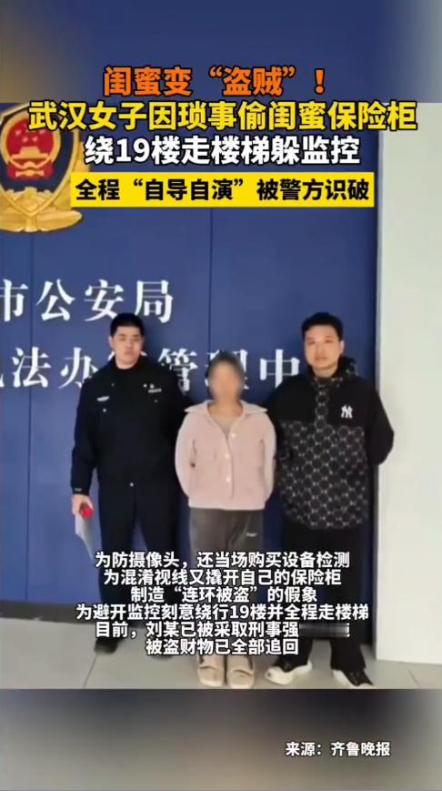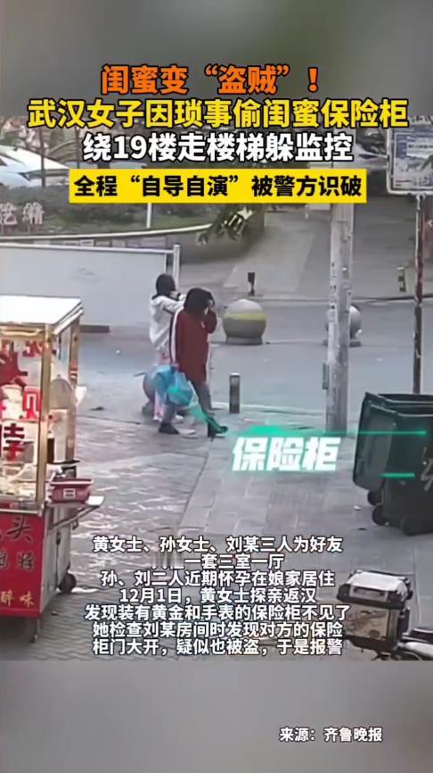 “聪明过头了!”12月1日,湖北武汉,女子探亲回出租屋后,发现金首饰和手表不见了,她去闺蜜屋检查,看到保险柜也被人打开了,怀疑进了贼,于是立即报警,可警方调查后,却发现闺蜜的形迹可疑!网友:贼喊捉贼? 要说现在什么东西最值钱,那绝对非黄金莫属,一克的价格在千元左右,这就让很多没有提前买黄金的人很后悔,对于家中有黄金的人也要谨慎保管,以免被贼人盯上! 据了解,刘女士与黄女士、孙女士3人同住一间房,由于关系比较好,大家平日里都不会锁门。当天,黄女士从老家探亲回来,开门后却发现屋内的保险柜不见了。 要知道,里面可装着她的金首饰和手表,价值非同小可,黄女士又跑到闺蜜屋里面查看,发现刘女士的保险柜也被人打开了。 意识到家里进贼了,黄女士马上报了警,警方调取监控后发现,当天只有一人进出过出租屋,而那人就是刘女士,但是她却将自己包裹得严严实实,而且先坐电梯到19楼,然后步行下来,很显然是在躲避监控。 警方将刘女士带走调查后,对方很快就承认了盗窃事实,原来,之前她和黄女士产生了矛盾,所以就趁对方回家探亲的间隙,偷走了财物,还假装自己也是受害人。 网友看后表示,果然防火防电防闺蜜这话没说错,有些人看起来非常好相处,但背地里不知道做了什么对不起自己的事! 信息来源:《闺蜜变“盗贼”! 武汉女子因琐事偷闺蜜保险柜,绕19楼走楼梯躲监控,全程“自导自演”被警方识破》新黄海