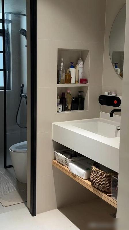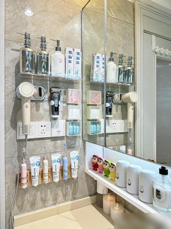 谁懂啊!昨天去邻居家,她卫生间直接把我羡慕到跺脚!墙面做收纳、镜柜藏东西、折叠淋