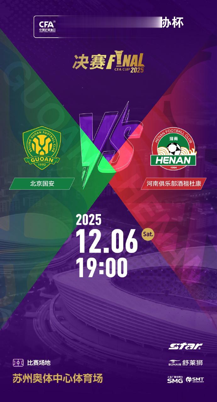2025中国足协杯决赛,北京国安对阵河南俱乐部酒祖杜康的比赛将于北京时间12月6日今晚19:00开始,两队将在苏州奥体中心体育场决战,决出2025中国足协杯冠军,赛前两队公布了本场比赛的首发名单。