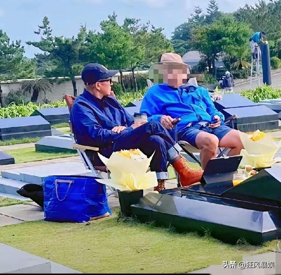 具俊晔,真是绝了! 具俊晔最新照片曝光,真是绝了!原来他每天去大S墓地真不是作秀,而是把墓地当成了会客厅。 在大S墓地,具俊晔正和友人畅谈,翘着二郎腿,气定神闲,表情轻松。知道的以为他是在缅怀大S,不知道的还以为他是度假了。 你看他的座椅,也不像户外野餐简易椅,还有软包。 再看墓前,水果饮料一应俱全。 把墓地当工作室,具俊晔还是第一个。