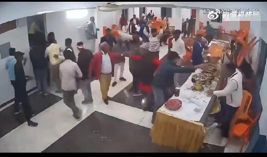 印度一婚礼因甜品短缺上演互殴,男女双方亲友大打出手!最后婚礼也取消退婚了,女方还