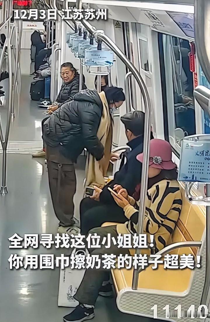 江苏苏州,一女孩独自乘地铁回家,不料,女孩不小心把喝的饮料撒在座位上,就在她手足无措的时候,没想到,她接下来的举动让人竖起了大拇指。网友:“品德家风教养在这一刻体现的淋漓尽致。” 女孩独自乘地铁回家,此时,刚好车厢里的人不算多,女孩找到一个空位,坐了下来。 刚好,上了一天的班,感觉有点口渴,他拿出水中的饮料,准备解解渴。 没想到,她在拧瓶盖的时候,一时没有拿稳饮料,手中的饮料,“噗通”一声,掉在座位上,饮料也跟着洒了出来,座位上、地面上到处都是。 和女孩坐在一起的乘客也是吓了一激灵,连忙躲开,不过还是多多少少被溅到身上一点。 女孩有点羞愧,连忙给他们道歉,大家都是同情搭理的人,没有多说什么,女孩还是感觉有点愧疚。 看到座位,地面的的饮料,他想拿卫生纸擦拭一下,但是,在口袋里摸了一遍又一遍,硬是没找到卫生纸,然而,女孩接下来的举动惊呆了众人。 只见她拿出自己的卫巾,一点一点的擦拭着座位上的饮料,可是地面上也洒了不少,如果不擦,如果有小朋友在这走的话,不小心滑倒了,那可不好办。 女孩也顾不得旁人异样的目光,直接拿出围巾在地人擦拭了起来,直到地上没有水渍,但是,自己的卫巾也被搞的脏兮兮的。 直到擦拭干净,女孩这才缓了口气,缓缓站起身,一看站点,自己已经过了几站了,直到到了下一站点,女孩才缓缓离开。 这一幕被一名乘客拍了下来,发到网上,不少网友被女孩的小小举动深深打动了,纷纷留言! 有人说:“这就是教养,这就是善良,既为自己的失误负责,又不影响他人,值得学习。” 也有的说:“这素质值的所有人学习。” 还有的说:“如果每个人都这样,这个世界该多美好。” 确实,这个女孩没有逃避自己的责任,用自己的行动为自己的过错买单,同时,也感染到了地铁上看到这一幕的所有乘客。 不过,也很欣慰,苏州地铁通过监控看到了这位女孩的善举,并向她表示了感谢,还给她准备了一个新围巾和文创大礼包。 果然,善良的人不管在哪里,运气都不会太差。 通过女孩的小小举动,可以看出,她的家教也非常好,她的举动就像黑暗里的一道光,照亮我们前进的道路,让我们一如既往的坚持着自己的初心一直走下去。
