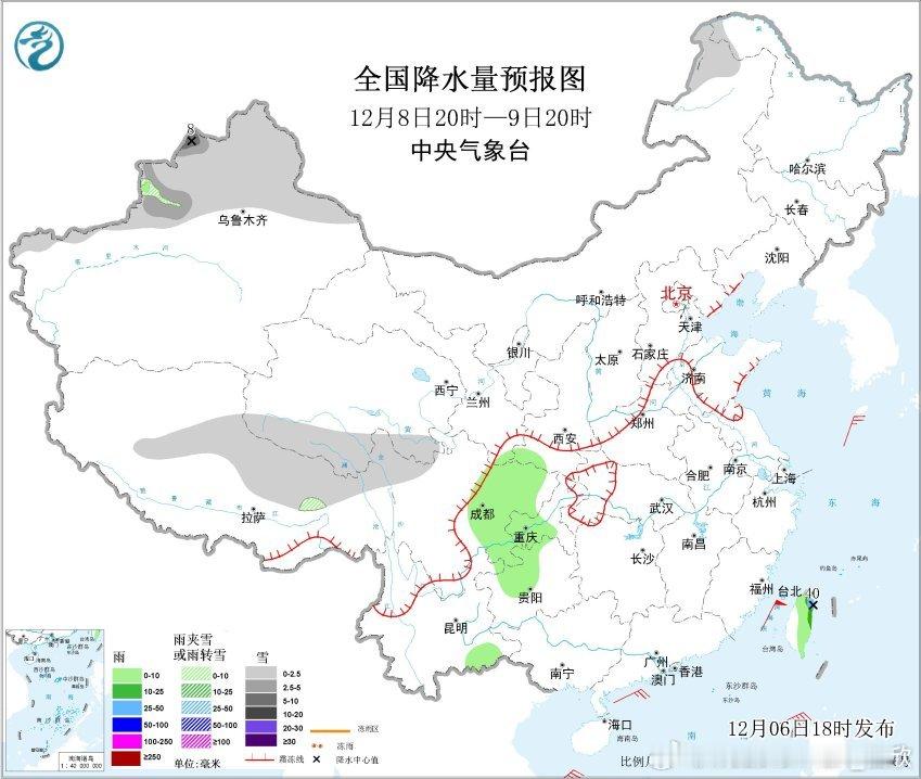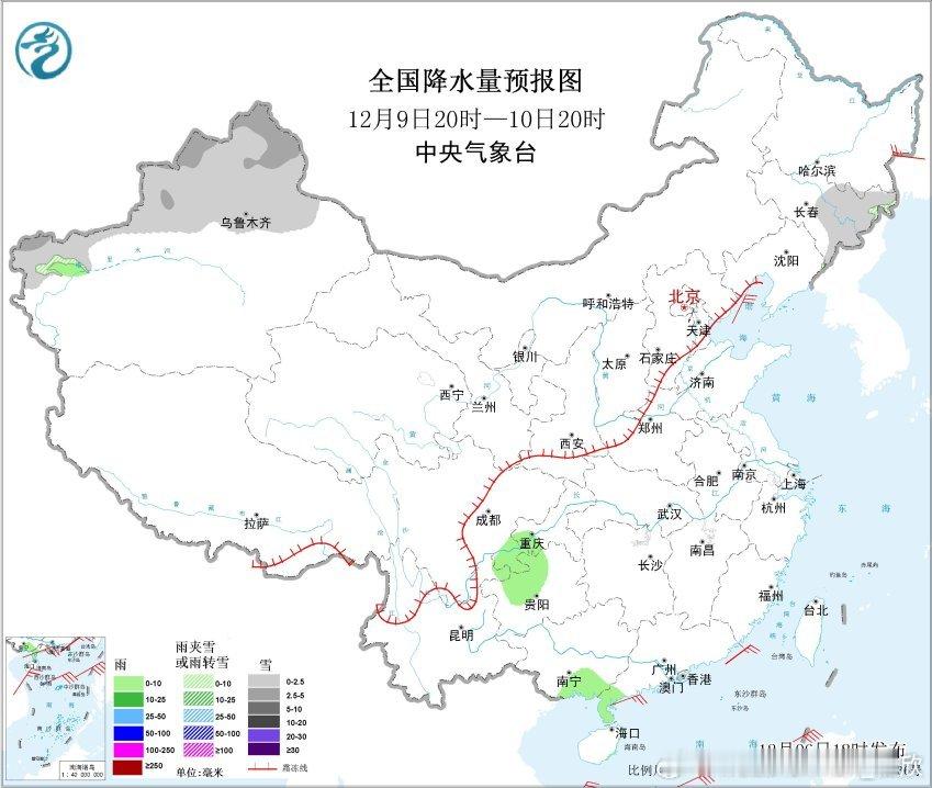 【降水】昨晚到今天,我国总体降水依然稀少,新疆北部出现了相对明显的降雪。明天我国的降水依然不多,在福建广东等地持续少雨,要警惕森林火灾的发生。未来天气的重要变化,出现在11日以后。11日晚-13日,中东部地区在冷暖空气交汇下,将出现近一个月以来最大规模的雨雪天气。