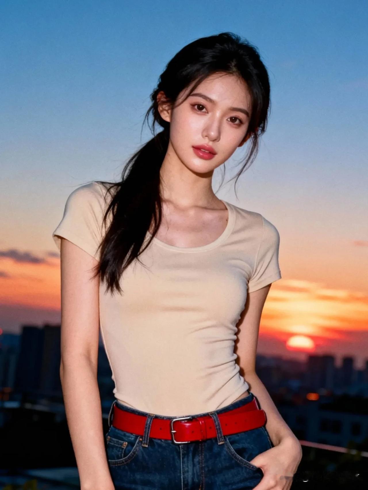 这套穿搭走的是简约修身+休闲日常风格,核心亮点是版型和配色的适配:•上装: