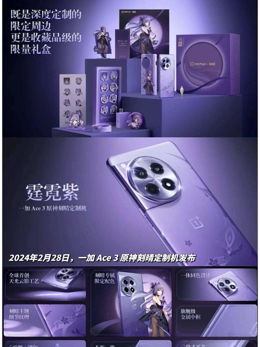 P3 一加今晚(2024/2/28)发布一加Ace3原神刻晴“霆霓紫”定制机。
