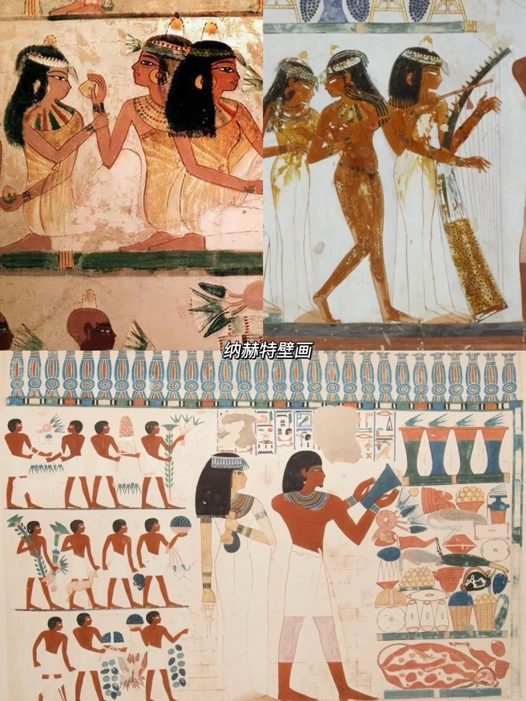 🎨另一个纳赫特古墓中,则展现了埃及人的日常生活。像是渔猎、宴客、化妆、演奏、跳舞,为阿蒙、姆特、月神孔斯祭祀等等,十分热闹。
