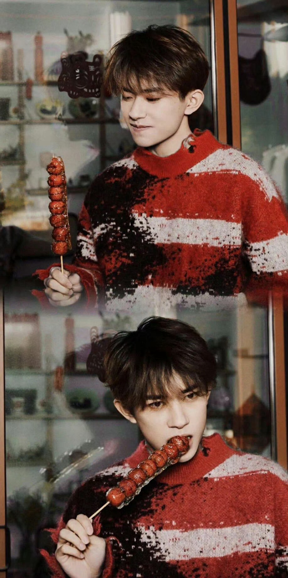谁能拒绝穿红毛衣的易烊千玺啊!热烈的红衬出清俊轮廓,简约款式被他穿出独有的气场,