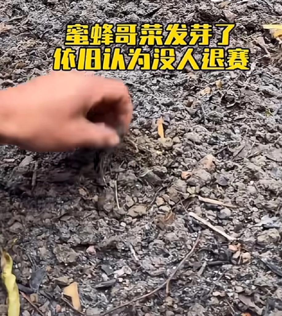 决赛场上人都快走完了,蜜蜂哥还在悠闲的种菜。菜种已经发芽了,蜜蜂哥说现在荒野生活刚开始,他不相信已经走了那么多人了。 节目组决赛刚开始的时候又发衣服,还发盐,发种子,发小锅。本来还以为这场决赛非得持久到过年,没想到只是10天的时间,文车车走了,林北走了,刀疤哥也走了。 真的没有人告诉蜜蜂哥已经走了那么多人了吗?蜜蜂哥还在那里认为自己的对手很强劲,要打持久战,已经做好了种菜吃菜的准备。 等到决赛结束的时候,蜜蜂哥回头看,明白了事情真相的时候,一定很好玩。