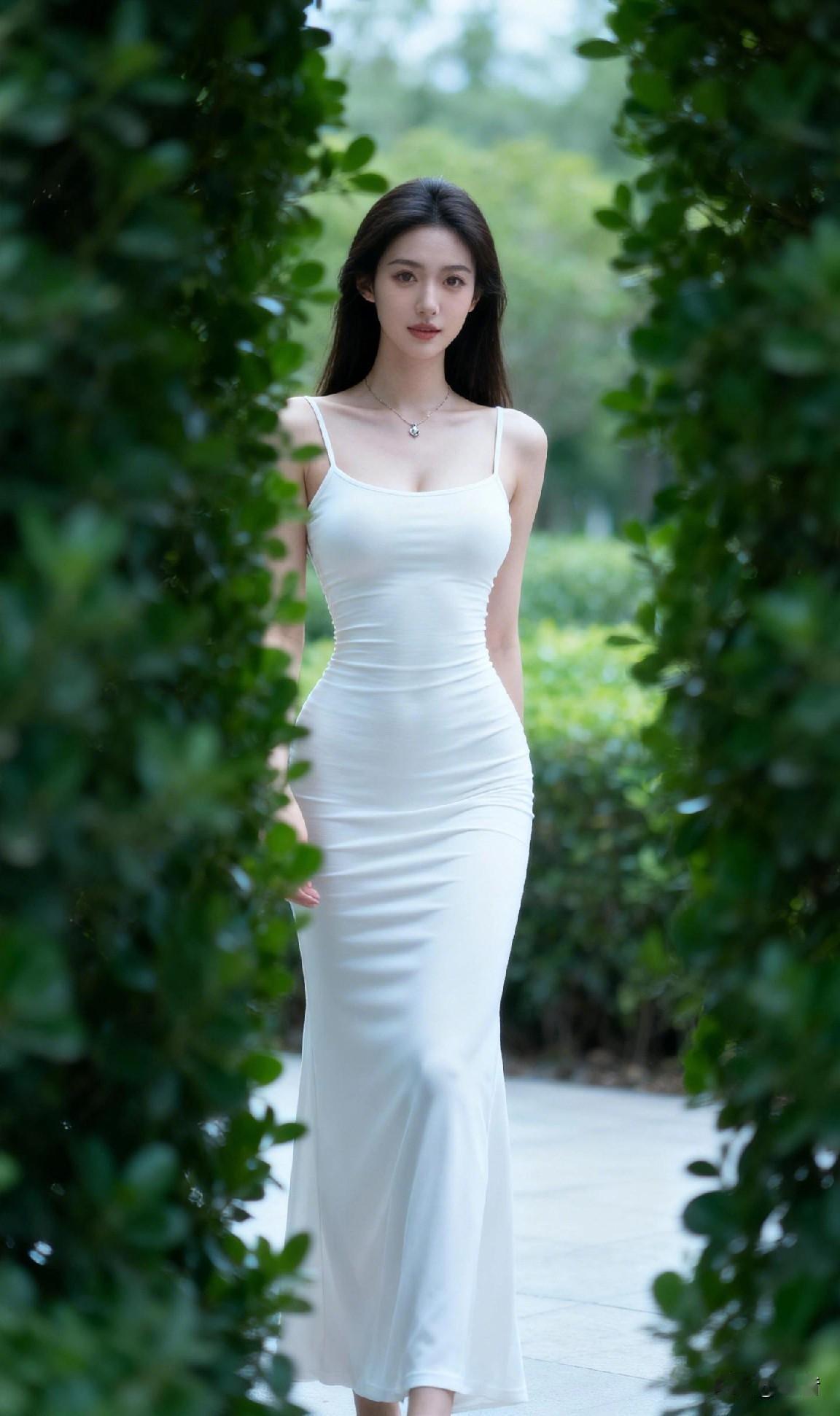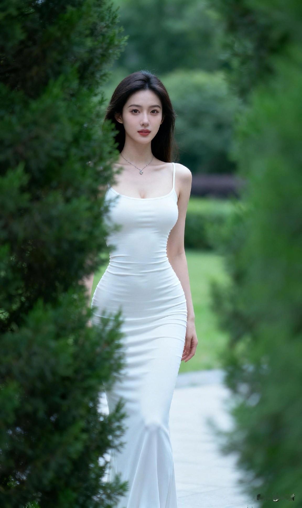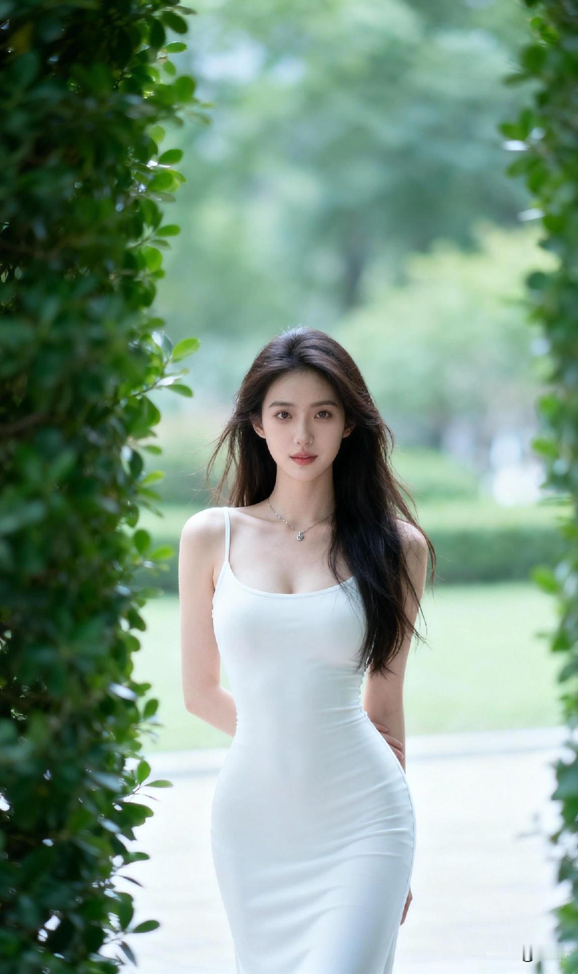 清冷系美人 她站在绿意最浓处 像一捧月光忽然有了形状
