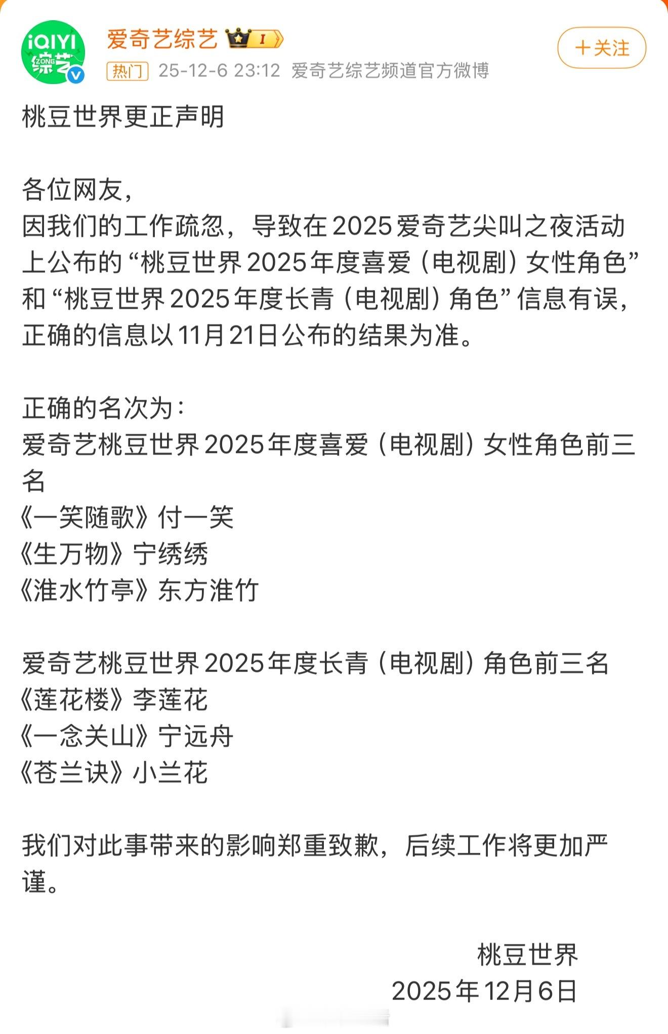 刘诗诗粉丝在维权明明是年度喜爱角色投票的第二,最终结果却被白鹿替换了,粉丝要求