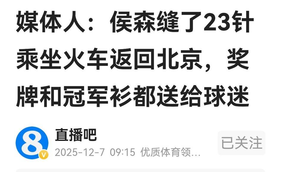 侯森的血性和情怀,就是老国安精神,应该成为国安队的根和魂。 昨天北京国安3:0拿下足协杯,全队发挥出色,更让球迷点赞的是老将侯森,上半场结束前因主动出击与队友相撞大出血,被缝了23针还坚持比赛,下半场教练已准备让张智健上场时,老侯又做手势表示自己能撑,果然他多次出击化险,还在门线封住了卡多索的头球射门。 老侯很低调很谦逊,前一天说自己是国安球门的下限,不能让位于不如自己的人,言外之意是国安只能一代更比一代强,这应该就是永远争第一的精神。 更让人感动的是,老侯把来之不易的冠军衫和金牌都送给了球迷,这博大而真挚的情怀,一下就化解了前期个别队员与球迷冲突的负面影响,再次将球队与球迷的情感拉近。作为土生土长的国安球员,老侯身上体现出来的精神,应该在国安队一代代传承。