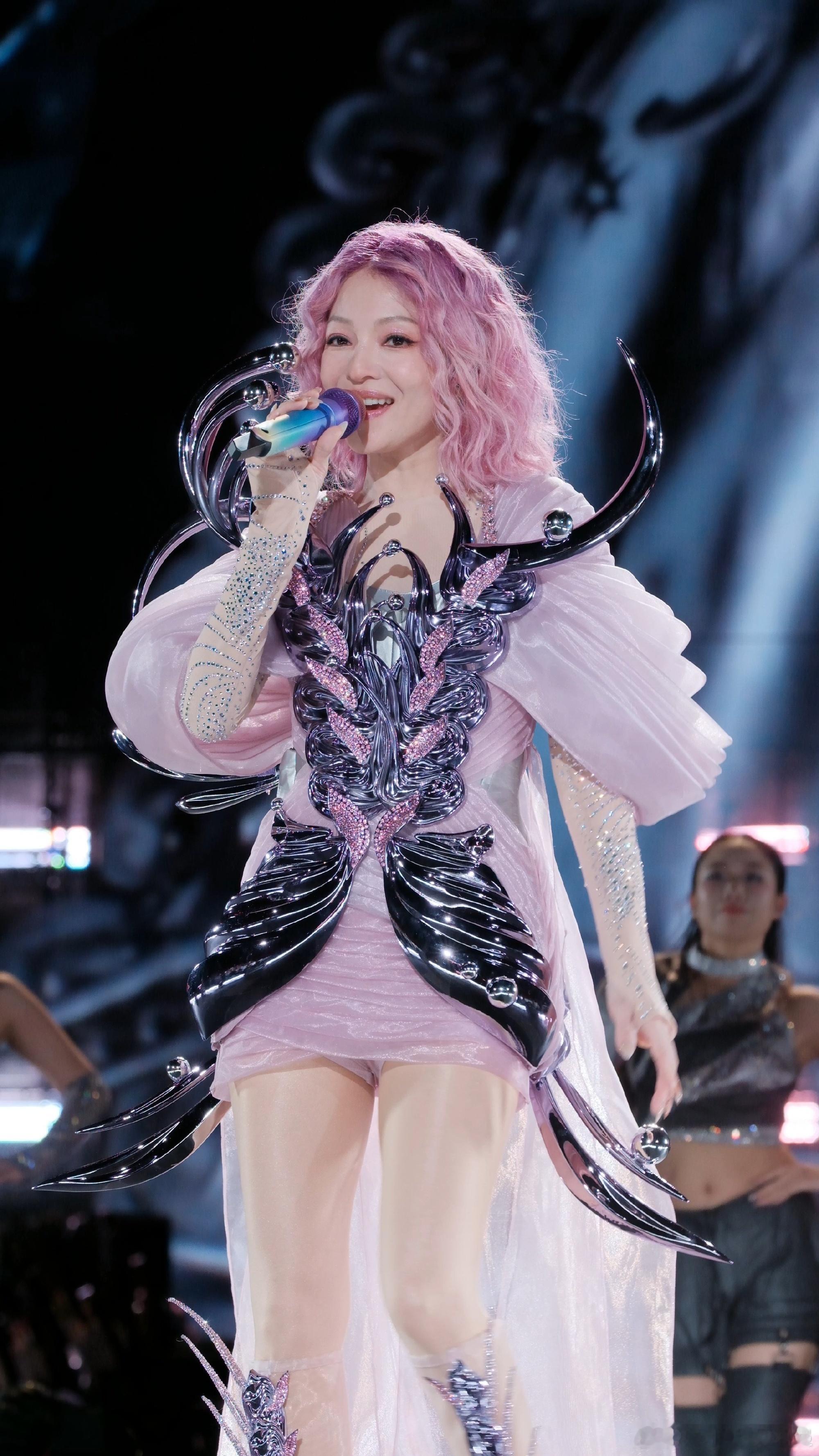 张韶涵在演唱会实时AI换脸 张韶涵的舞台永远藏着惊喜,汕头场用实时AI换脸让替身完美衔接旧look,再递给粉色盔甲造型的自己,虚实结合的设计既新颖又有记忆点,现场氛围直接被点燃。