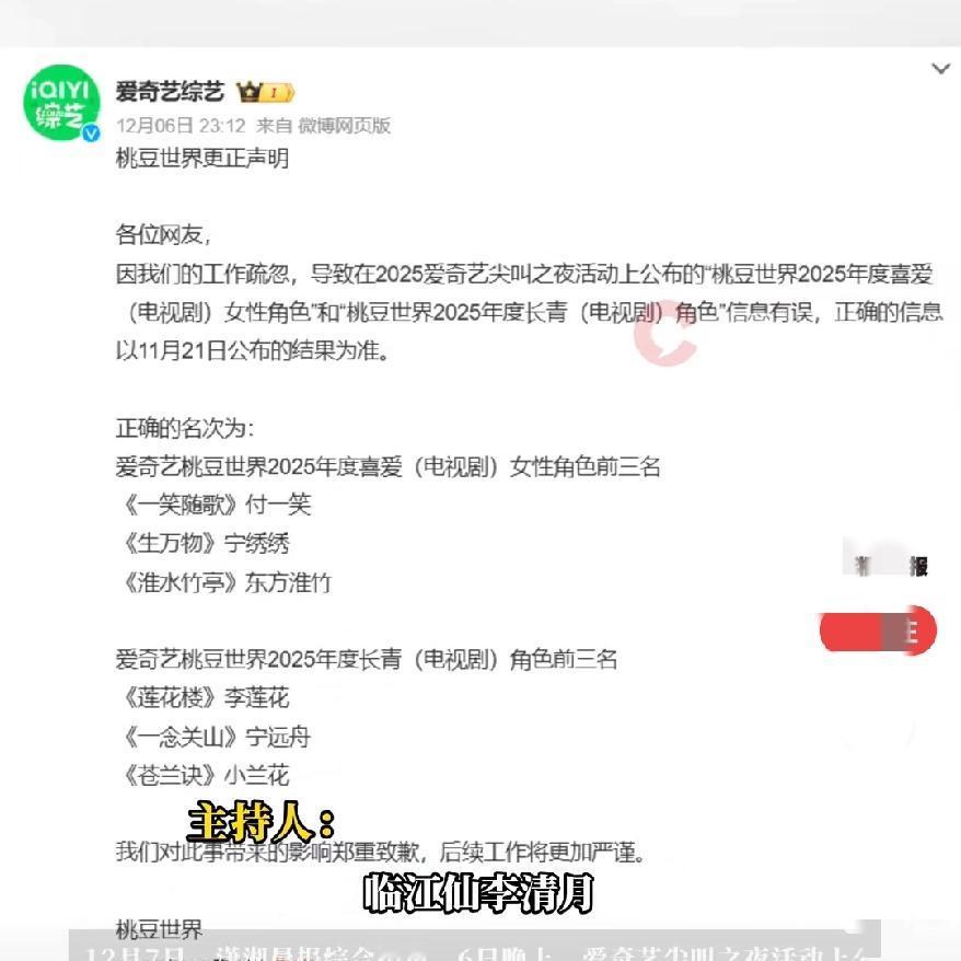 这下好了, 爱奇艺尖叫之夜 把颁错奖玩出了新离谱,直接把行业专业性踩在了脚下!
