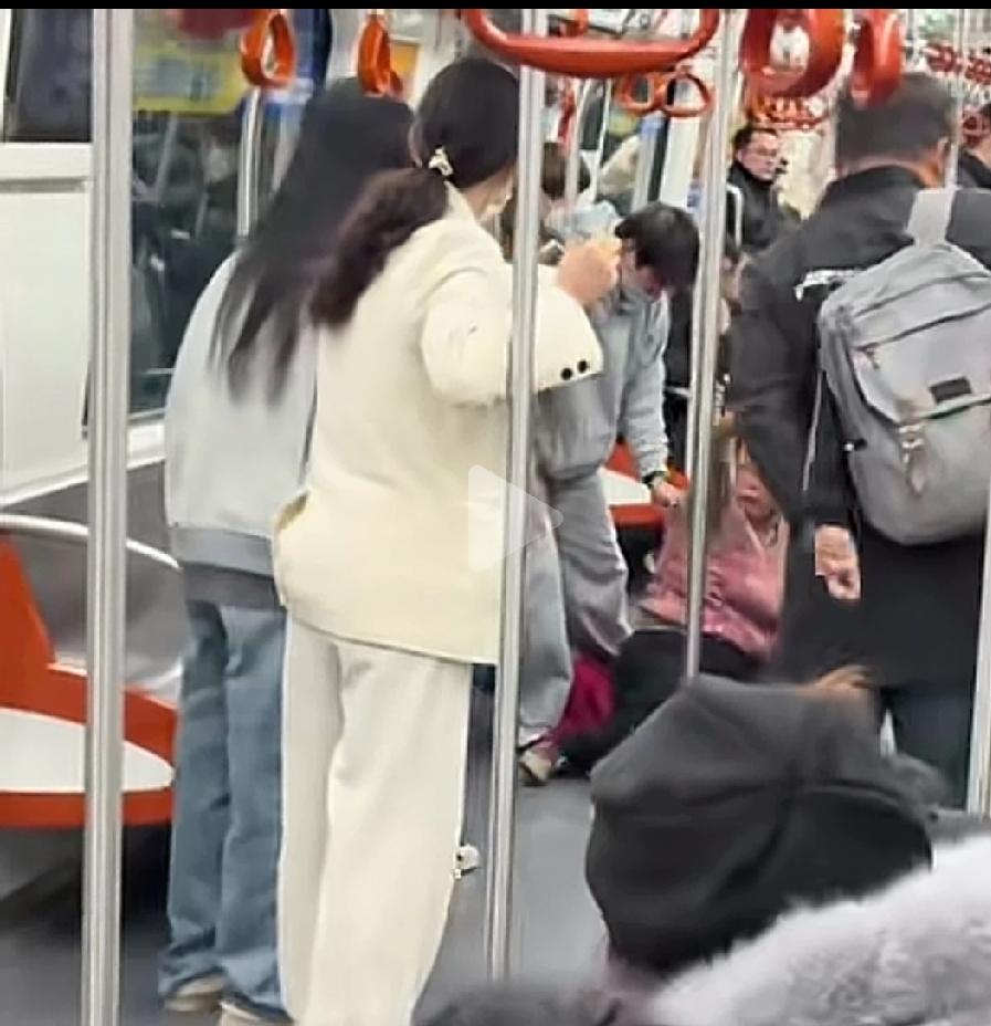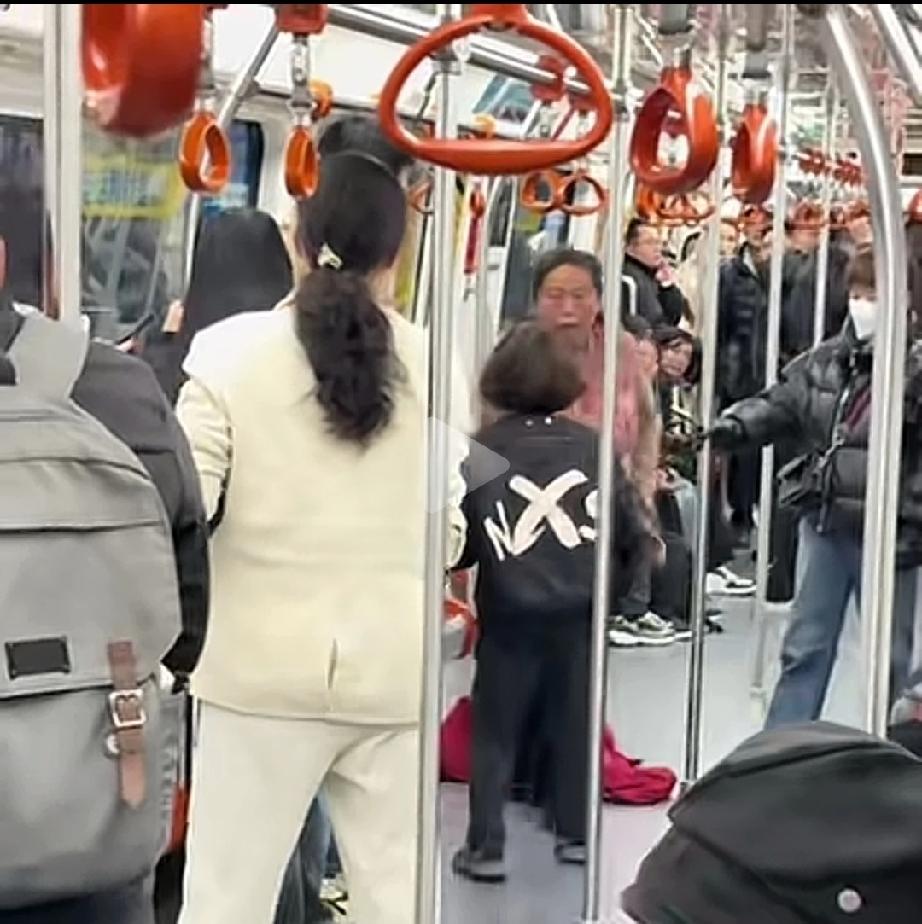 12月6日,杭州。年轻的妈妈带着年幼的女儿乘坐地铁,在车厢里和年长的女子发生争执