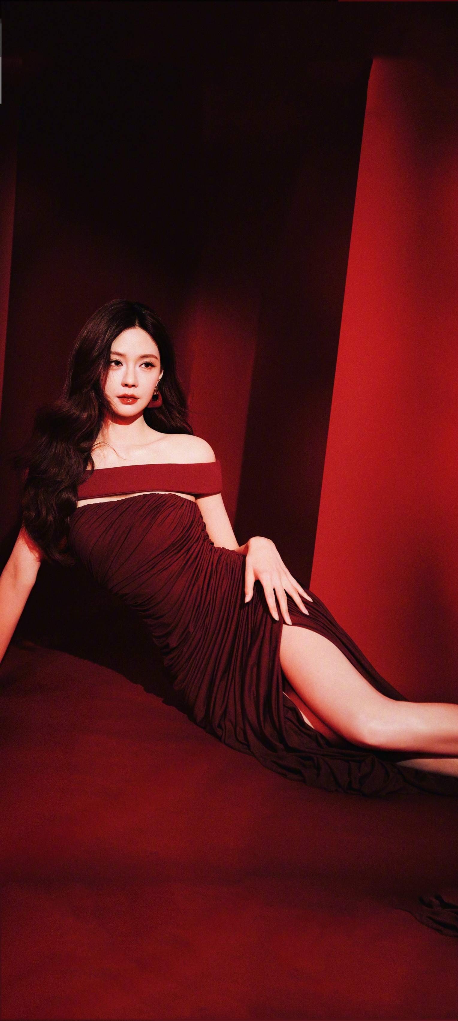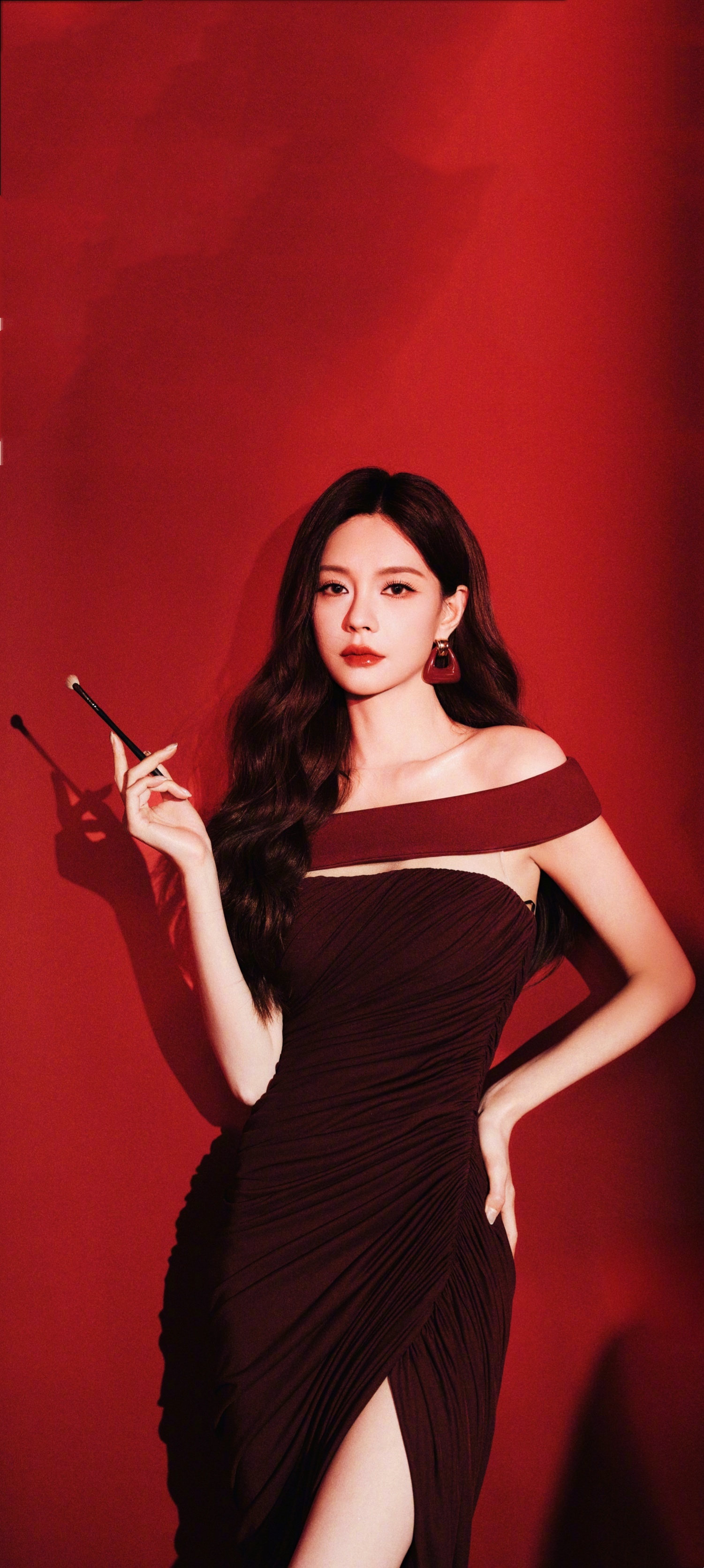 沈梦辰好漂亮 玫瑰红裙穿搭全屏壁纸,浓颜妆容冷酷迷人。沈梦辰