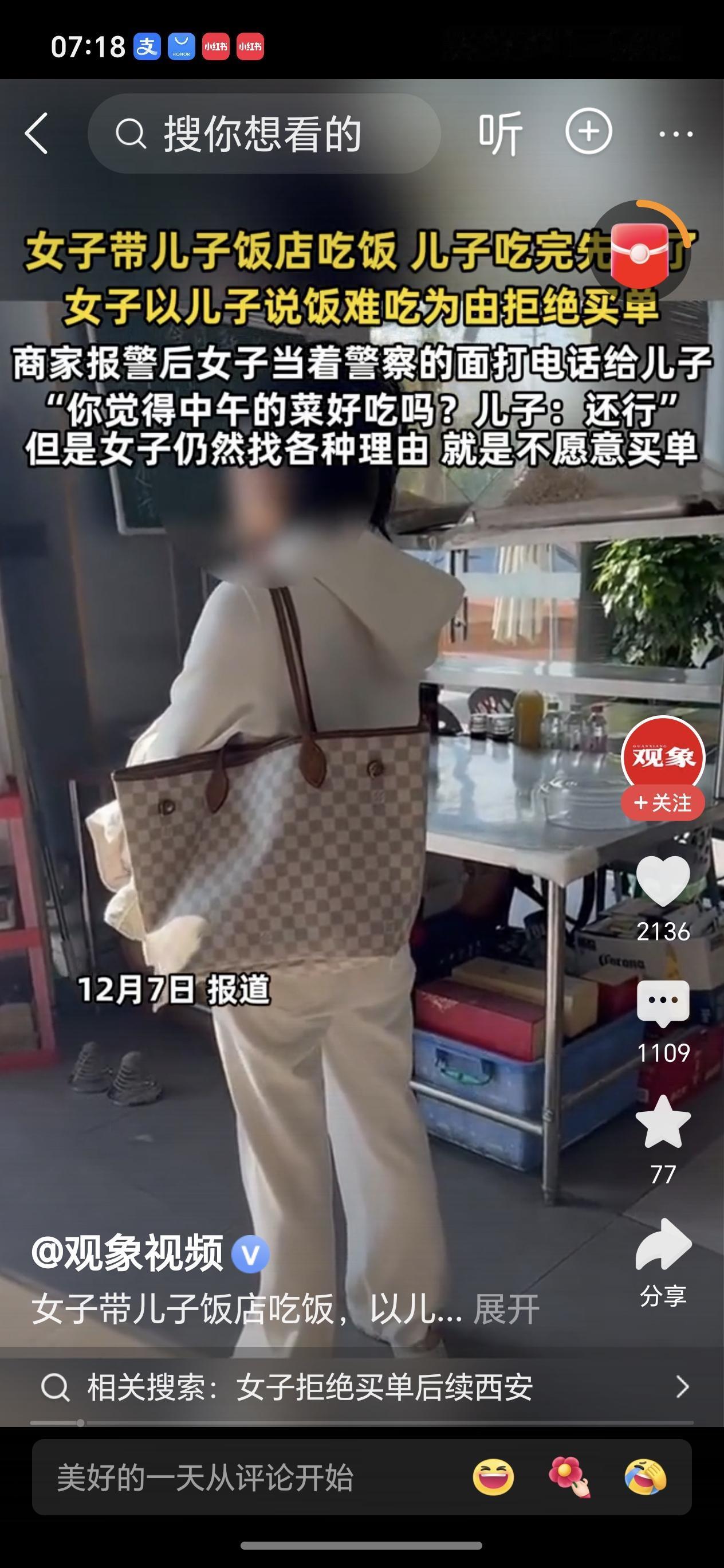 女子下馆子以儿子说难吃为由拒买单近日,一女子带儿子去饭馆吃饭,却以儿子说难吃为由