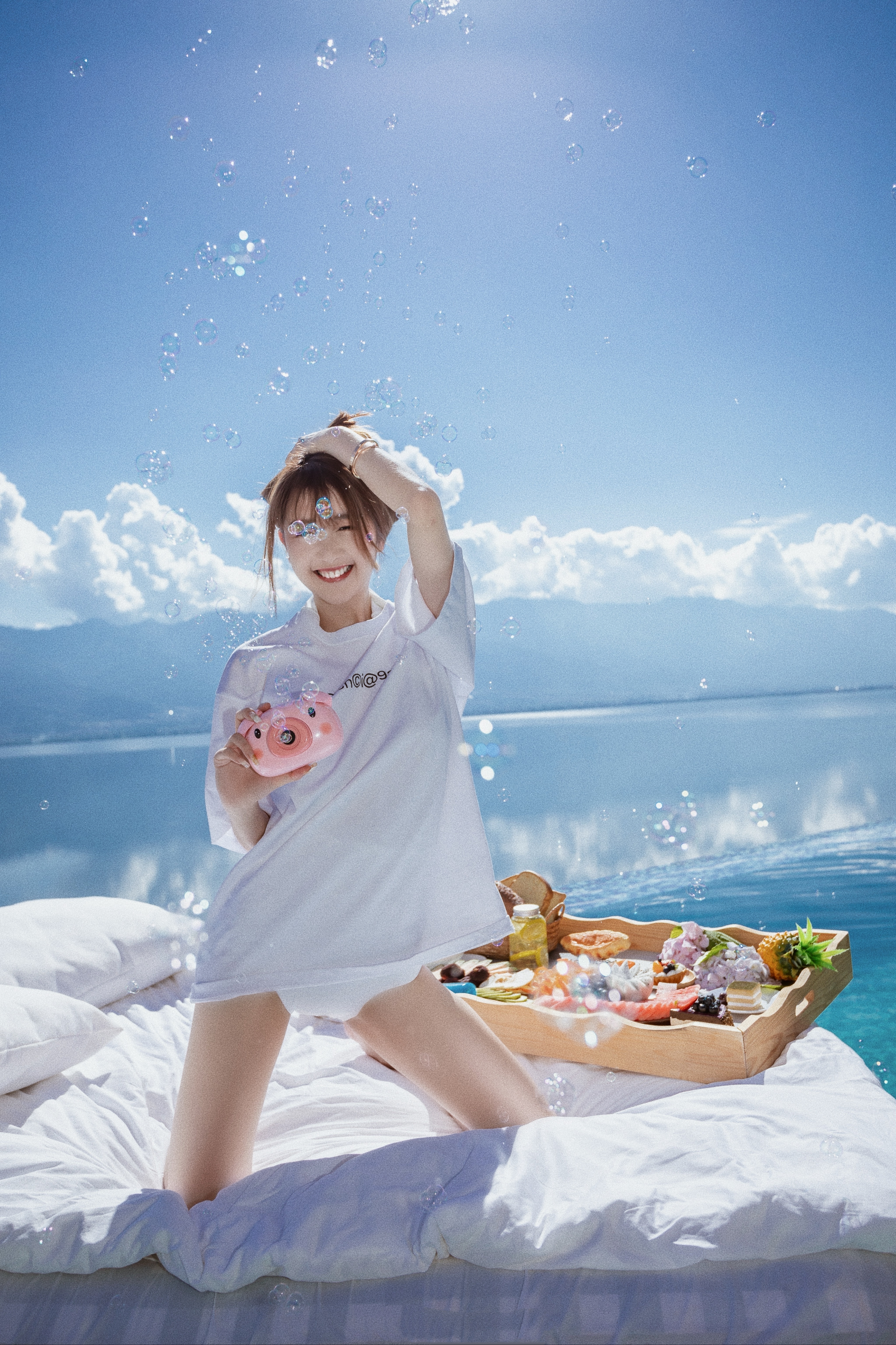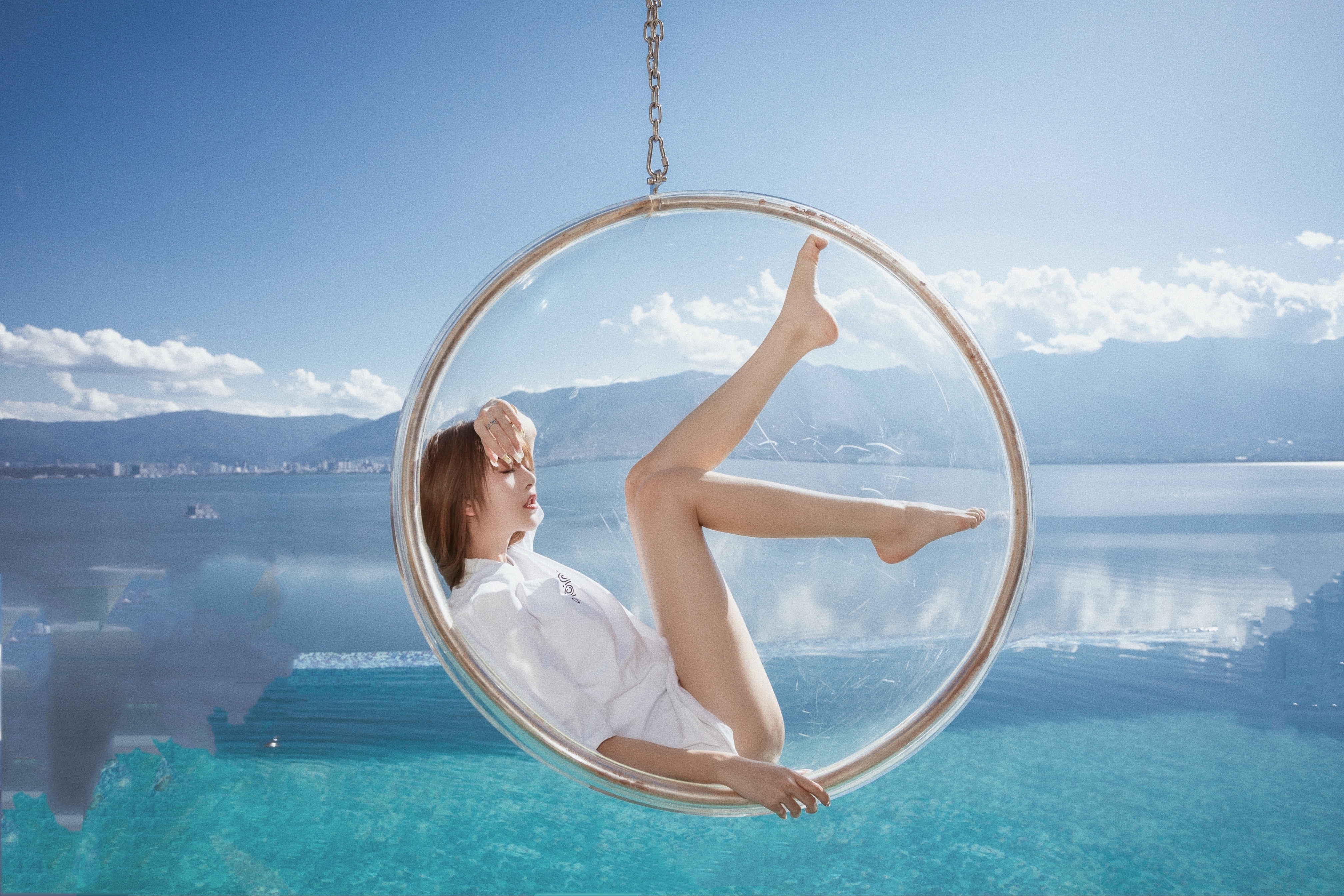 卓仕琳白衬衣度假美图,大长腿吸睛,好唯美的海边氛围。卓仕琳
