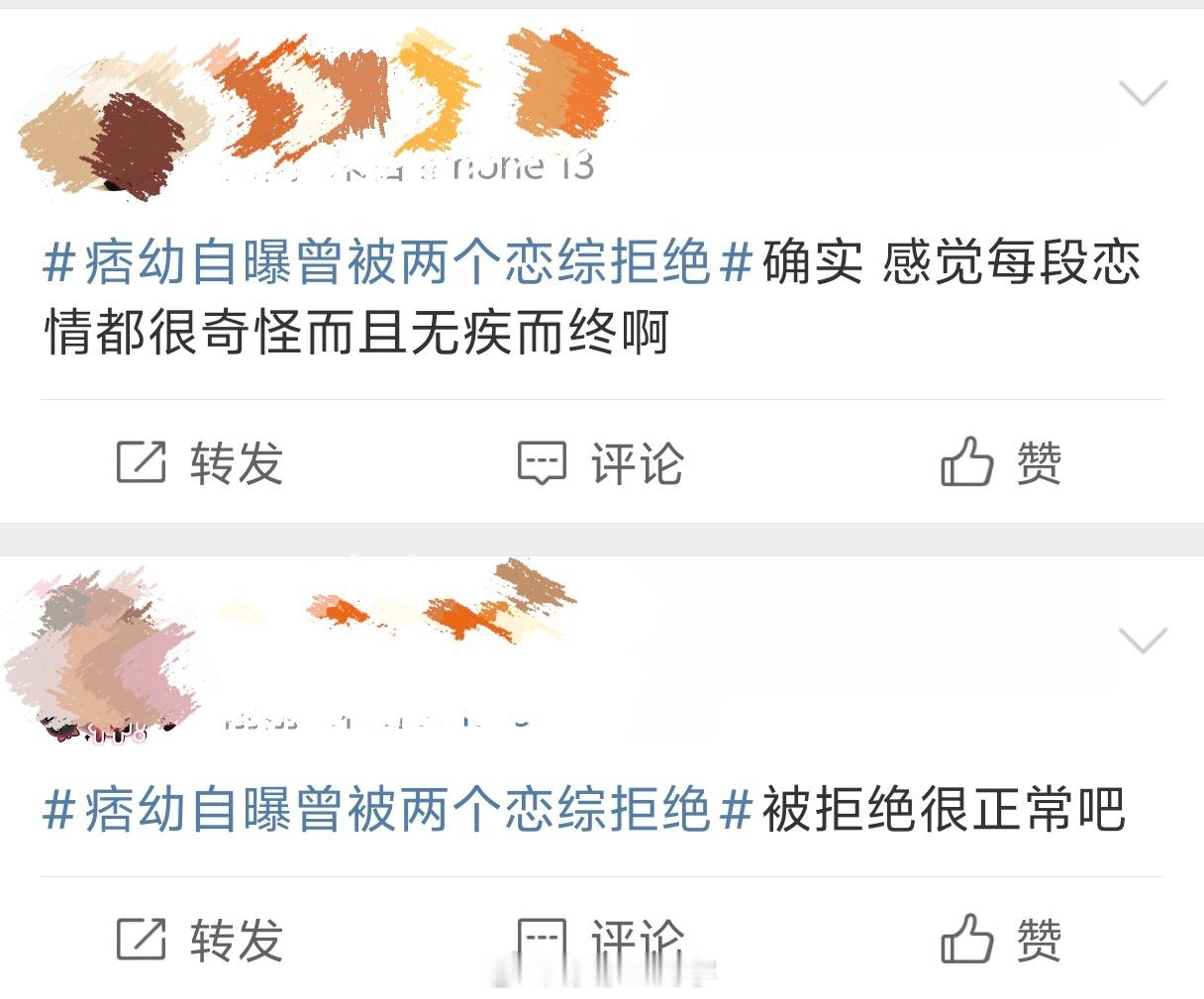 痞幼自曝曾被两个恋综拒绝看了一眼评论,没想到这么大的网红路人缘竟然这么差…不过痞
