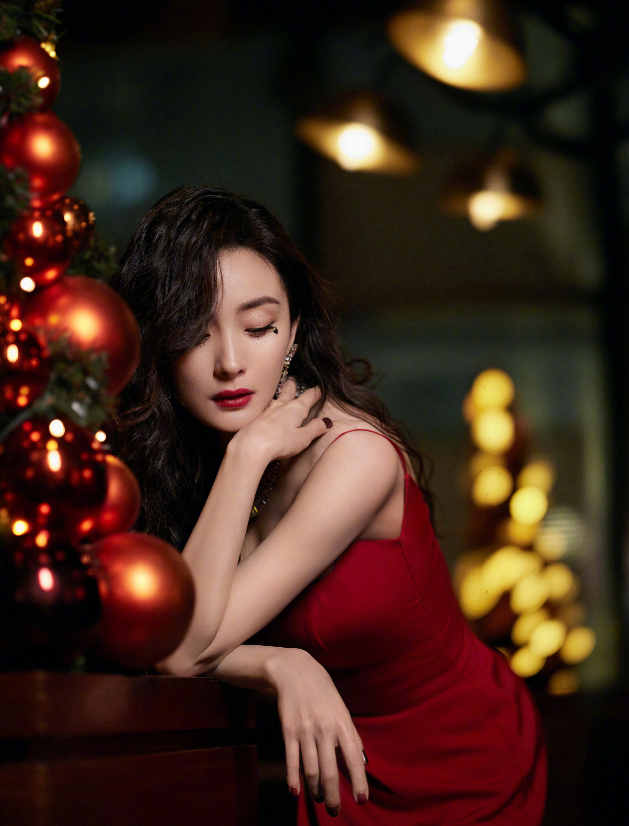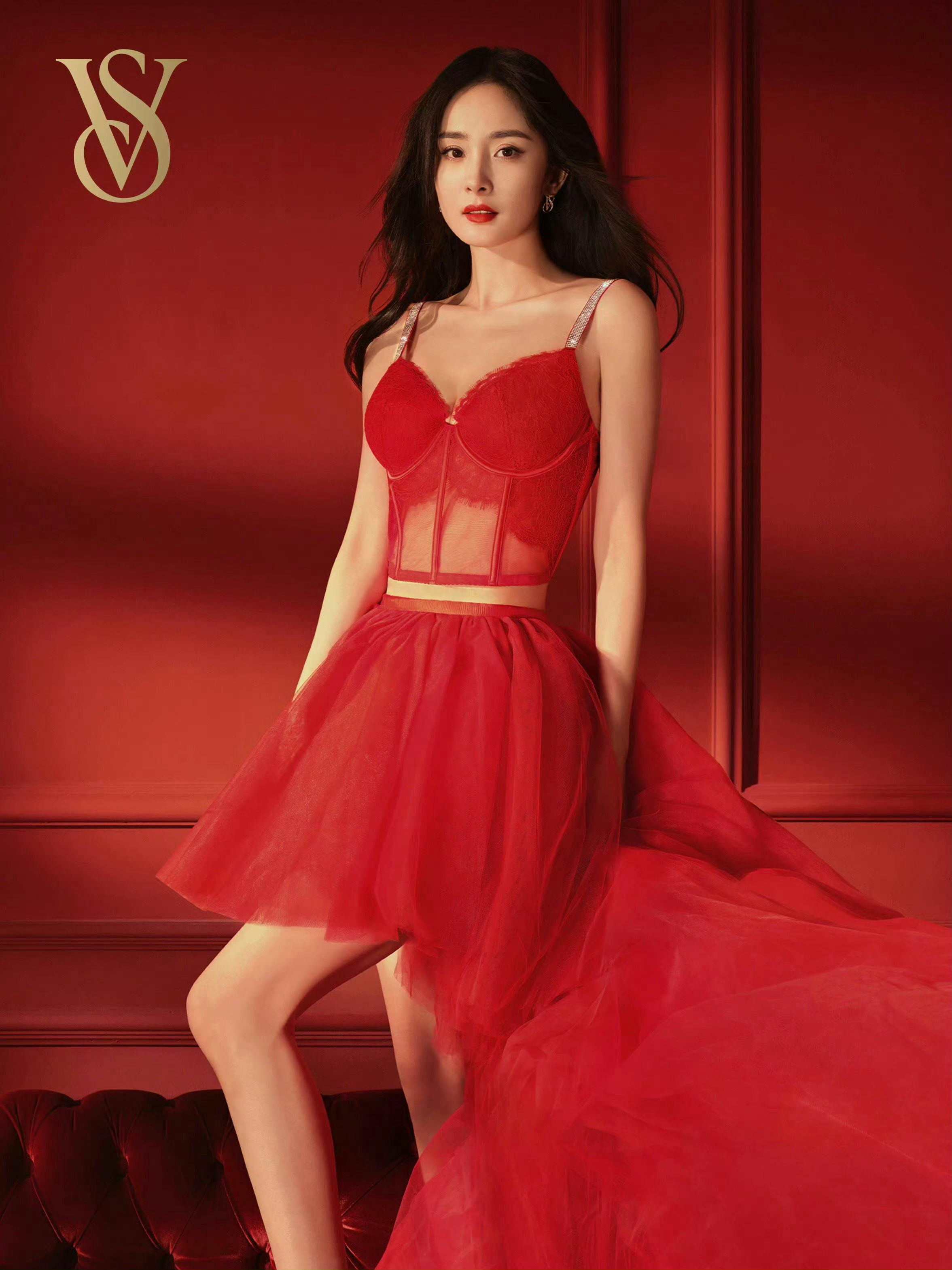 杨幂,维多利亚的秘密红裙,柔美精致。杨幂