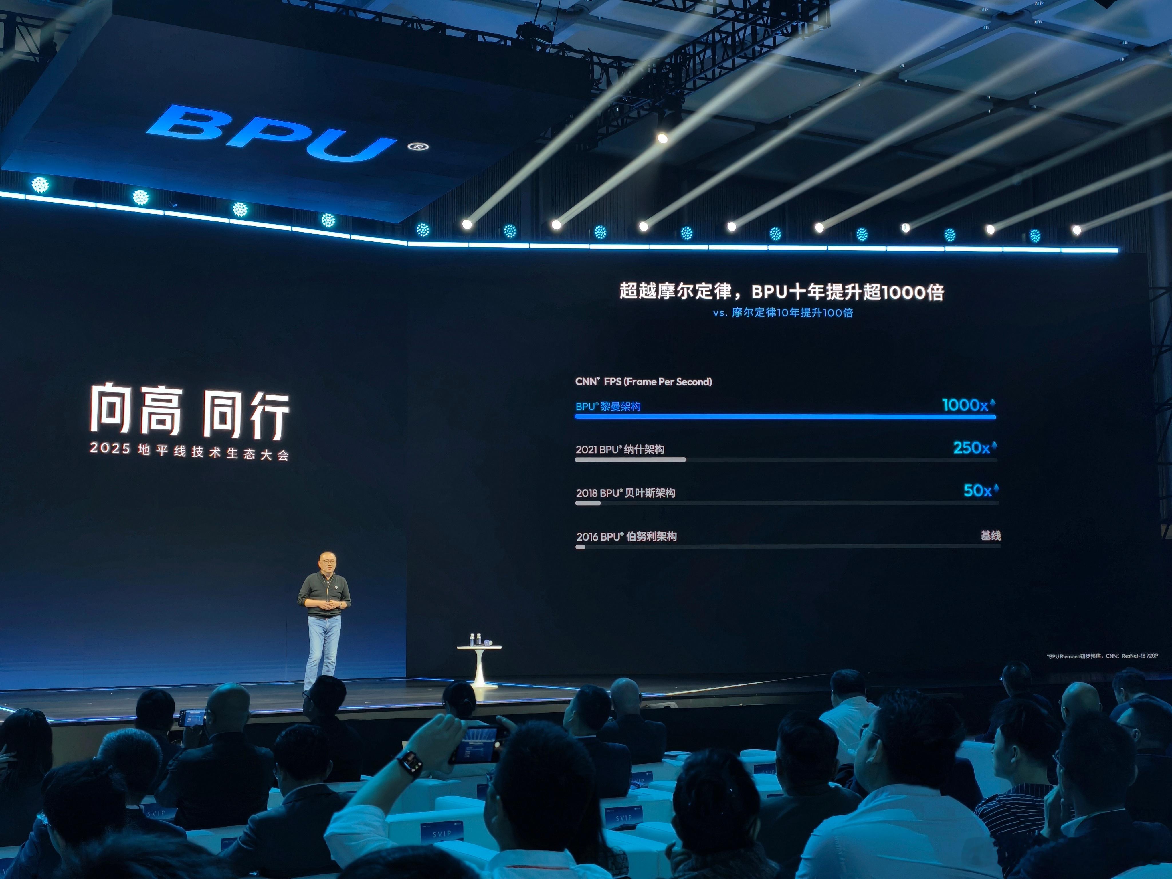 地平线征程 7 系列芯片将采用地平线第四代 BPU 黎曼架构,这是一个面向通用机器人计算的架构,将和特斯拉 AI5 芯片同步推出。Elon 之前透露 AI5 将在 27 年推出,J7 应该也差不多。两款芯片的共同特点是算力更强、效率更高、能效大幅提升。2025地平线技术生态大会