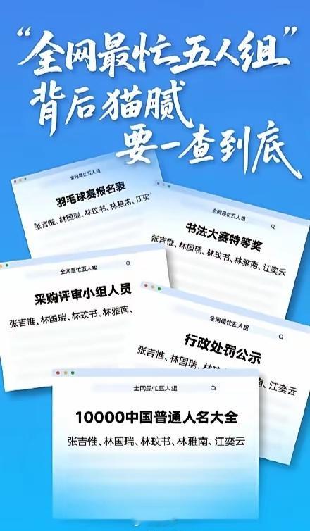 全网最忙五人组必须一查到底!!!“全网最忙五人组”(张吉惟、林国瑞等5人)近日因