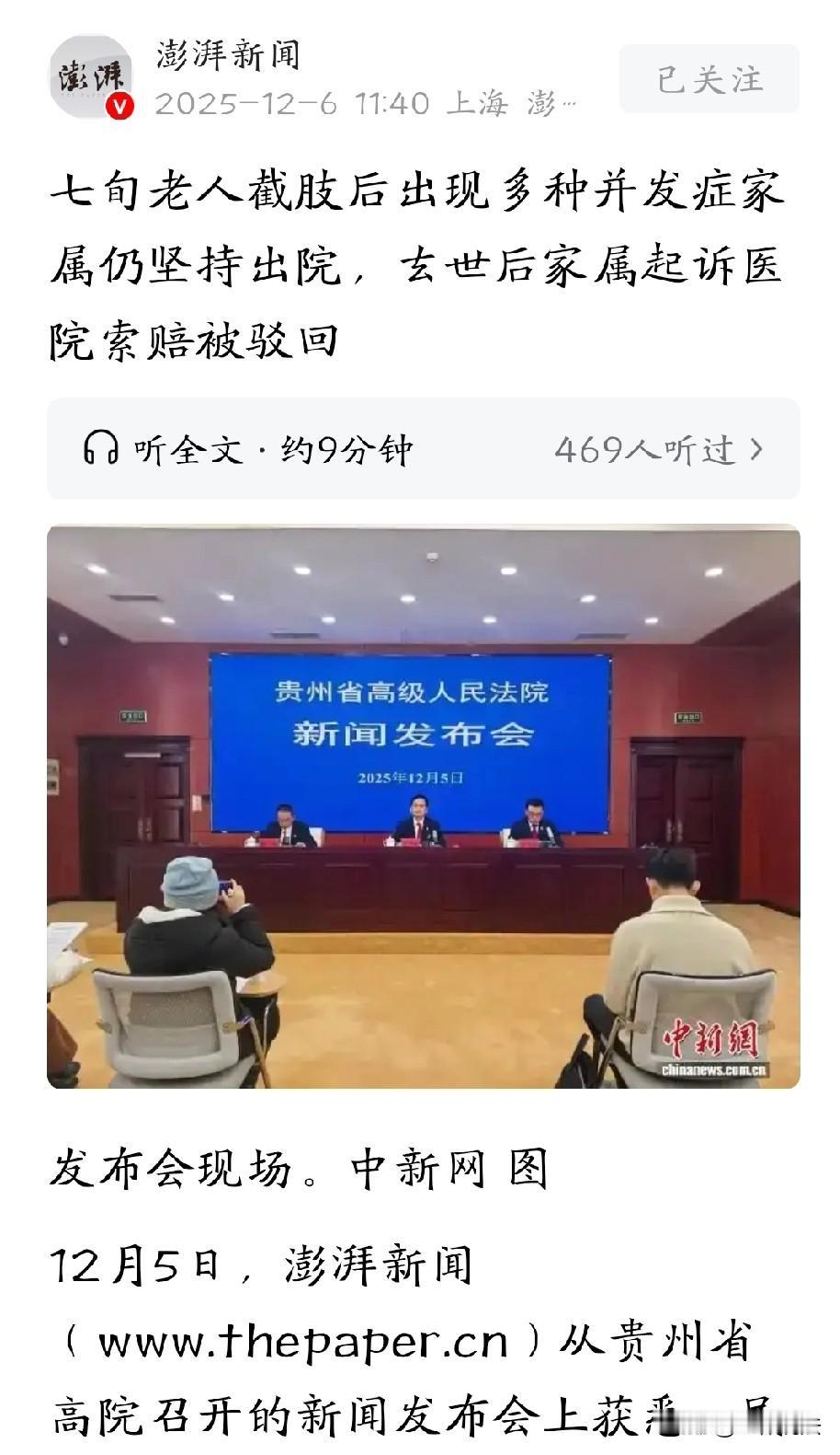 贵州,75岁老人截肢后,仅仅出院54天,老人的伤口就出现感染化脓症状,不得不再次入院治疗。医生经过诊断,认定老人患有多种并发症,经过简单手术后,老人病情危重。在这生死抉择的时刻,家属选择了出院,放弃治疗。第二天,老人在家中去世,家属没有进行尸检就匆匆火化下葬。事后,家属越想越气愤,老人遭了这么大的罪做手术,最后还无济于事,这肯定是诊疗不当所致,于是一纸诉状把医院告上法庭,索赔26万余元,法院判了。 75岁的马某常年受腰腿疼痛困扰,起初在当地某甲医院住院治疗,本想着好好调理能缓解不适,可病情没见好转反倒一个劲加重。 看着马某疼得直皱眉、走路都费劲,家属们心里又急又慌,满脑子都是赶紧让他好起来。 某甲医院治疗了一段时间,马某的效果并不佳,医生也给他们建议,尽快转到上级医院。 家属们也没敢怠慢,赶紧带着马某转到了上级的某乙医院,满心期待这里的医疗条件能帮老人摆脱病痛。 可到了乙医院后,马某的情况愈发严重,左下肢疼得比之前厉害多了,足背皮肤破了一块,还出现了软组织坏死,腿上的温度也忽高忽低,膝盖以下更是凉得明显。 医生仔细检查后,联系了烧伤整形外科会诊,最终确定需要截肢才能控制病情。 医生跟家属详细说清截肢的必要性和后续风险后,马某的家属纠结了许久,想着只要能保住老人性命,吃点苦就吃点苦,他们也只能咬牙同意。 随后,马某在全麻状态下做了左下肢截肢手术,术后直接转入重症医学科监护治疗。 可术后没多久,马某就出现了多种并发症,身体状况越来越差,医生一次次跟家属说明病情危重。 尽管医生反复强调出院的风险,可家属看着老人在医院遭罪,又担心后续治疗看不到希望,思来想去还是决定出院,不顾医生的再三劝阻,当天就办了出院手续。 本以为在家休养能安稳些,没想到出院才过了54天,马某截肢的伤口就开始感染化脓,疼得他卧床不起,家属见状赶紧又把人送回乙医院。 医生检查后诊断出马某患上了创伤后伤口感染、脓毒血症还有重症肺炎,情况危急得很,当即给马某做了脓肿切开引流手术,可术后病情依旧没稳住,还是处于危重状态。 看着老人躺在病床上毫无起色,家属再次动了出院的念头,即便医生再次明确告知出院后大概率会危及生命,他们还是坚持要带老人回家,当天就又办了出院手续。 果不其然,第二天,马某就在家中离世了,家属悲痛之余,没想着弄清楚具体死因,也没做尸检,就匆匆把老人火化下葬了。 事后,家属越想越觉得心里不平衡,认为是甲、乙两家医院诊疗不当才导致老人去世,于是将两家医院告上法庭,要求赔偿各项损失共计26万余元。 依据《民法典》第一千二百一十八条规定,患者在诊疗活动中受到损害,医疗机构或者其医务人员有过错的,由医疗机构承担赔偿责任。 家属认为,老人的死亡和医院脱不了干系,医院存在过错,应当承担相应的赔偿责任。 法院查明,甲医院对马某的腰腿疼痛病症及时采取治疗措施,在病情加重时第一时间告知家属转院,已完整履行基础诊疗义务,无明显过错。 乙医院针对马某下肢坏死情况,经会诊明确截肢指征并充分告知家属风险,两次住院均针对性开展治疗,且反复提示出院危重风险,诊疗流程合规、责任尽到。 家属主张医院赔偿,却未提供任何能证明医疗机构或医务人员存在过错的证据,不符合过错担责的核心要件。 《最高人民法院关于审理医疗损害责任纠纷案件适用法律若干问题的解释》第四条规定,患者无法提交医疗机构或者其医务人员有过错、诊疗行为与损害结果之间具有因果关系的证据,依法提出医疗损害鉴定申请的,人民法院应予准许。 因医疗机构的过错导致患者无法取得相关证据,患者主张医疗机构承担相应举证责任的,人民法院应予支持。 家属虽申请医疗损害责任鉴定,但马某去世后未进行尸检便匆匆火化,导致鉴定机构无法依据现有病历资料,该证据缺失并非医疗机构过错导致,而是家属自身选择所致。 根据举证责任分配原则,家属作为主张权利一方,本应承担举证证明诊疗过错及因果关系的义务,因自身原因导致鉴定无法开展、举证不能,相应不利后果需由家属自行承担。 法院认定,马某去世后没做尸检,鉴定机构没法凭借现有病历做出鉴定,家属也没拿出能证明两家医院诊疗有过错的证据。 最终,法院依法驳回了家属的全部诉讼请求。