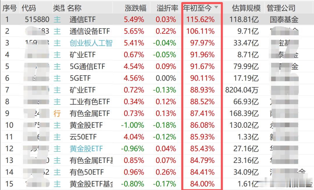 今年涨幅最大的ETF随着头部科技企业陆续发布AI新版本,中金公司预测,在头部科技企业加速部署自研AI ASIC集群的背景下,光模块需求有望在2026年继续维持高增长。其中,对800G和1.6T光模块的需求预计分别达到4000万只和2000万只以上(2025年预计分别为2000万只和100万只)。未来一年,光模块市场有望维持高景气度。今天,光模块概念股表现亮眼:天孚通信上涨19.20%,新易盛上涨7.15%,中际旭创上涨6.14%。这些公司均为通信设备指数的成分股,跟踪该指数的通信ETF(515880)今日上涨5.49%。博格又看了一下,今年以来通信ETF累计涨幅达115.62%,在所有ETF中涨幅居首。此外,该ETF最新规模为118.81亿元,在所有与光模块相关的ETF中也是规模最大的。有人可能会问:“为什么通信ETF的弹性这么强?” 这主要归因于其跟踪指数的成分股结构:光模块权重占比达52%,服务器占比22%,加上光纤、铜连接等环节,合计占比超过81%。对AI有信心的投资者,可以将通信ETF(515880)及其联接基金(A类007817、C类007818)加入自选,先行研究。基金港股股市