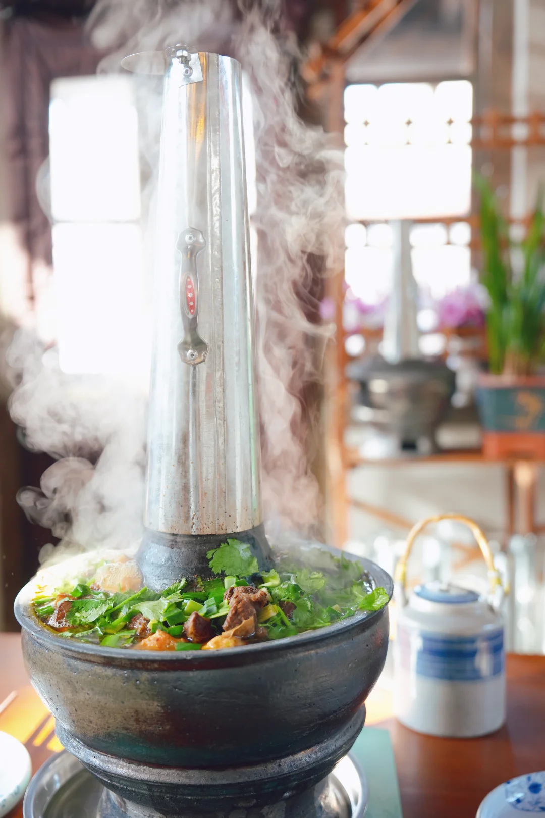 暖锅早已滚烫冒泡,牛羊肉、新鲜蔬菜早已备好,配上秘制蘸料,一口下去驱散所有寒意~ 氛围超棒,和家人朋友边吃边聊太幸福啦!