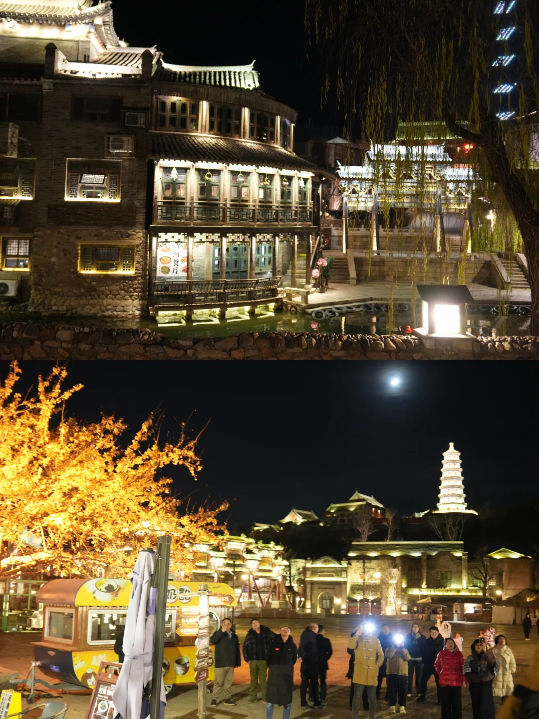 青石板路两旁是江南风建筑,白天漫步赏景,随手拍都是古风大片!转角就能遇见特色小店,买份非遗糖画、围炉煮茶,惬意到不想走~ 还能俯瞰壮美河山,感受古城与长城的碰撞!