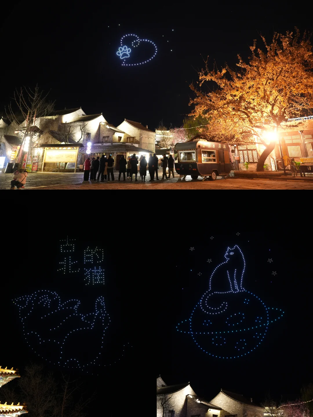 千架无人机在长城上空铺展光影,像漫天孔明灯在跳舞,把夜空变成梦幻画布~ 灯光与长城交相辉映,拍照发圈直接被问爆地址!