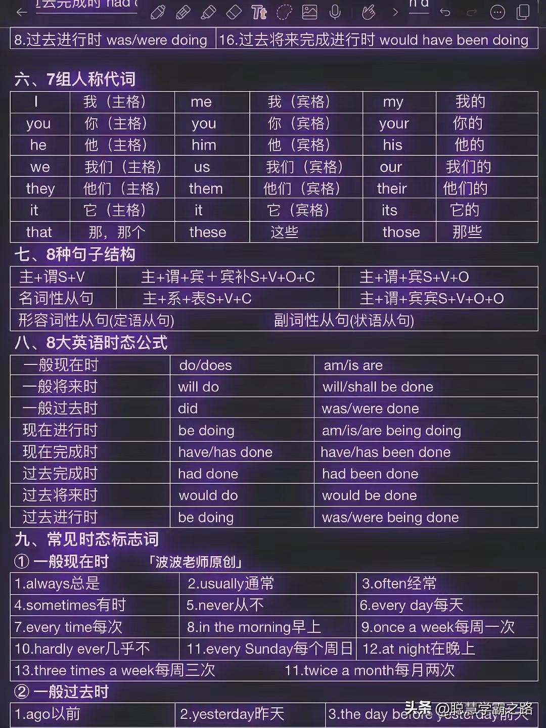 天哪,居然有天才学霸竟然整理出这么系统全面的英语语法体系,看来拯救英语还得是我们