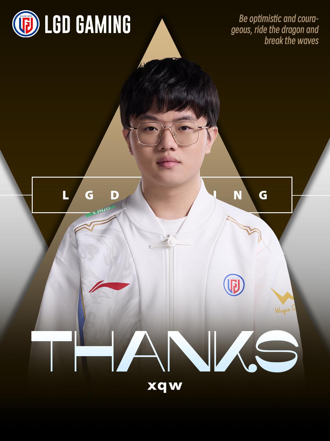 感谢xqw选手在效力LGD期间的付出与贡献!祝愿xqw选手在职业赛场上前程似锦,一切顺利!