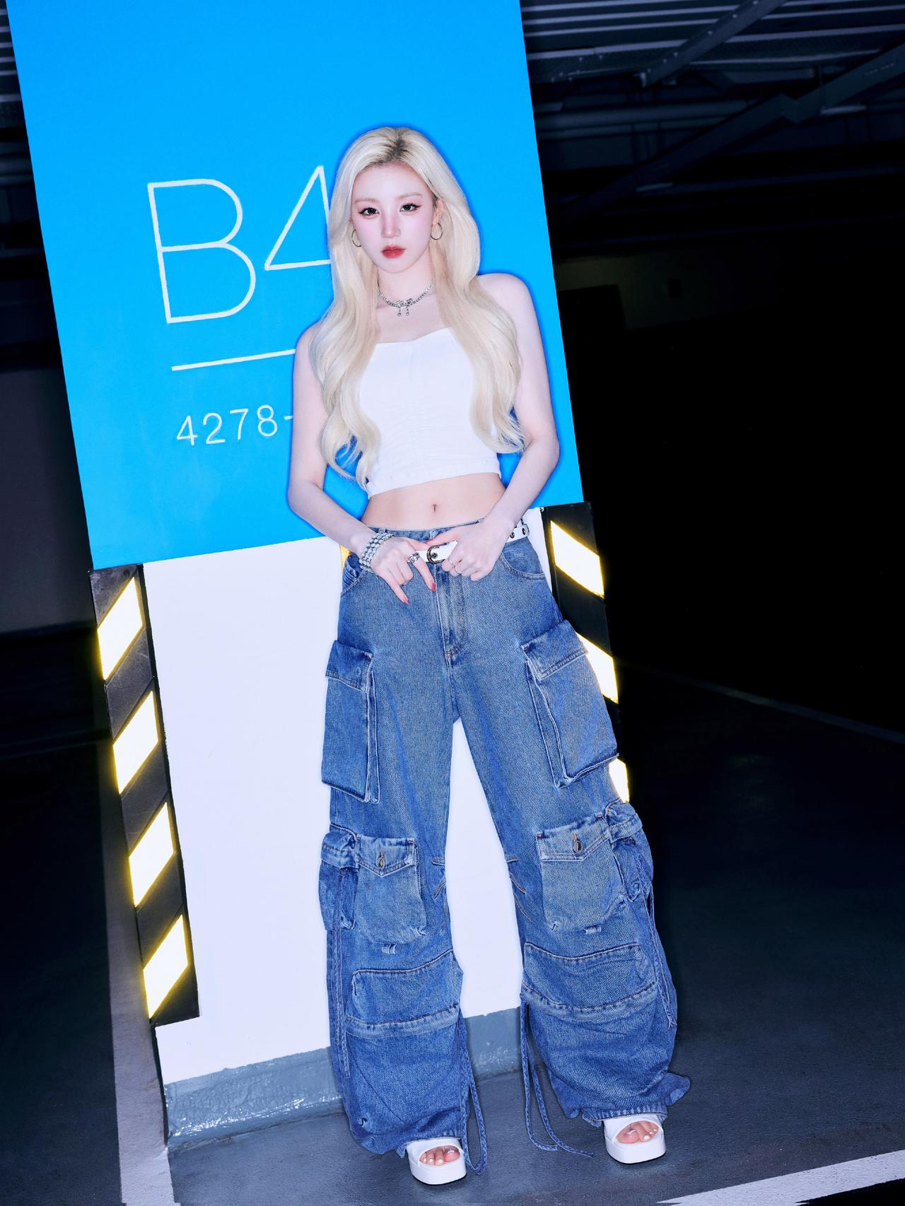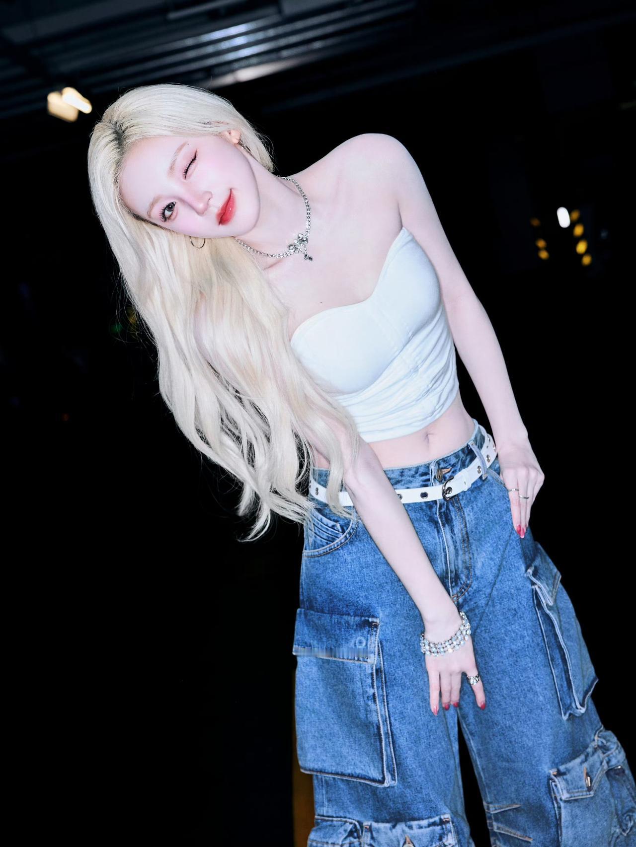 时尚大片!牛仔工装裤搭配白色露脐上衣,酷炫有型!宋雨琦!!!
