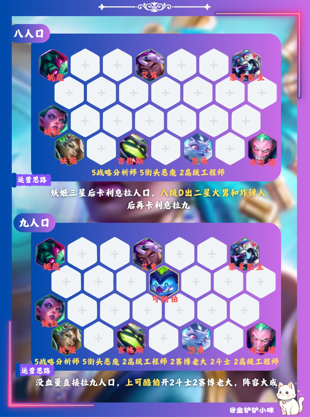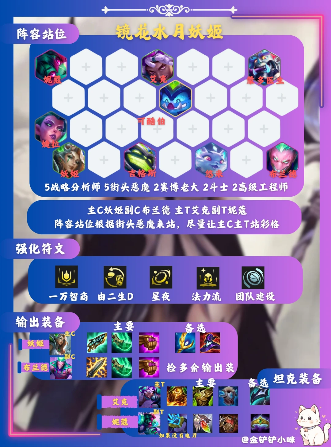 3️⃣阶段3-2拉6,大D找到二星妖姬和其他体系牌!然后卡利息慢D三星妖姬和艾克!其他体系牌来的多顺便追!铁男可换战略分析师羁绊的棋子!