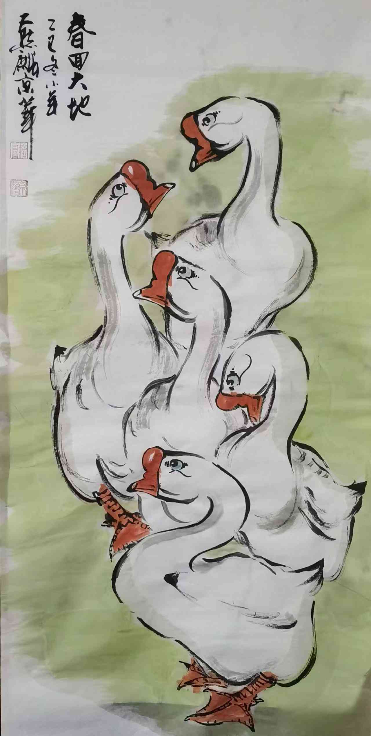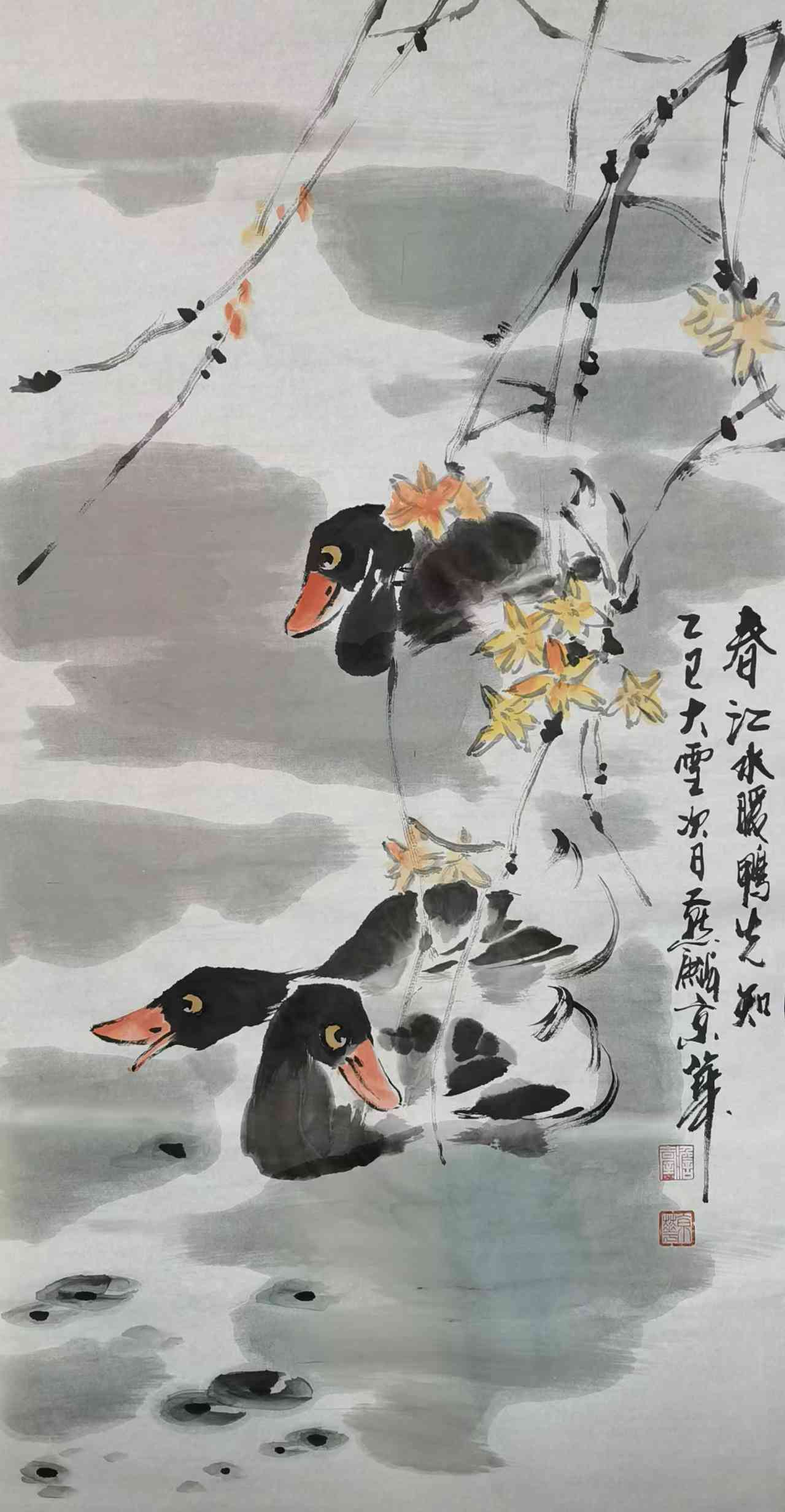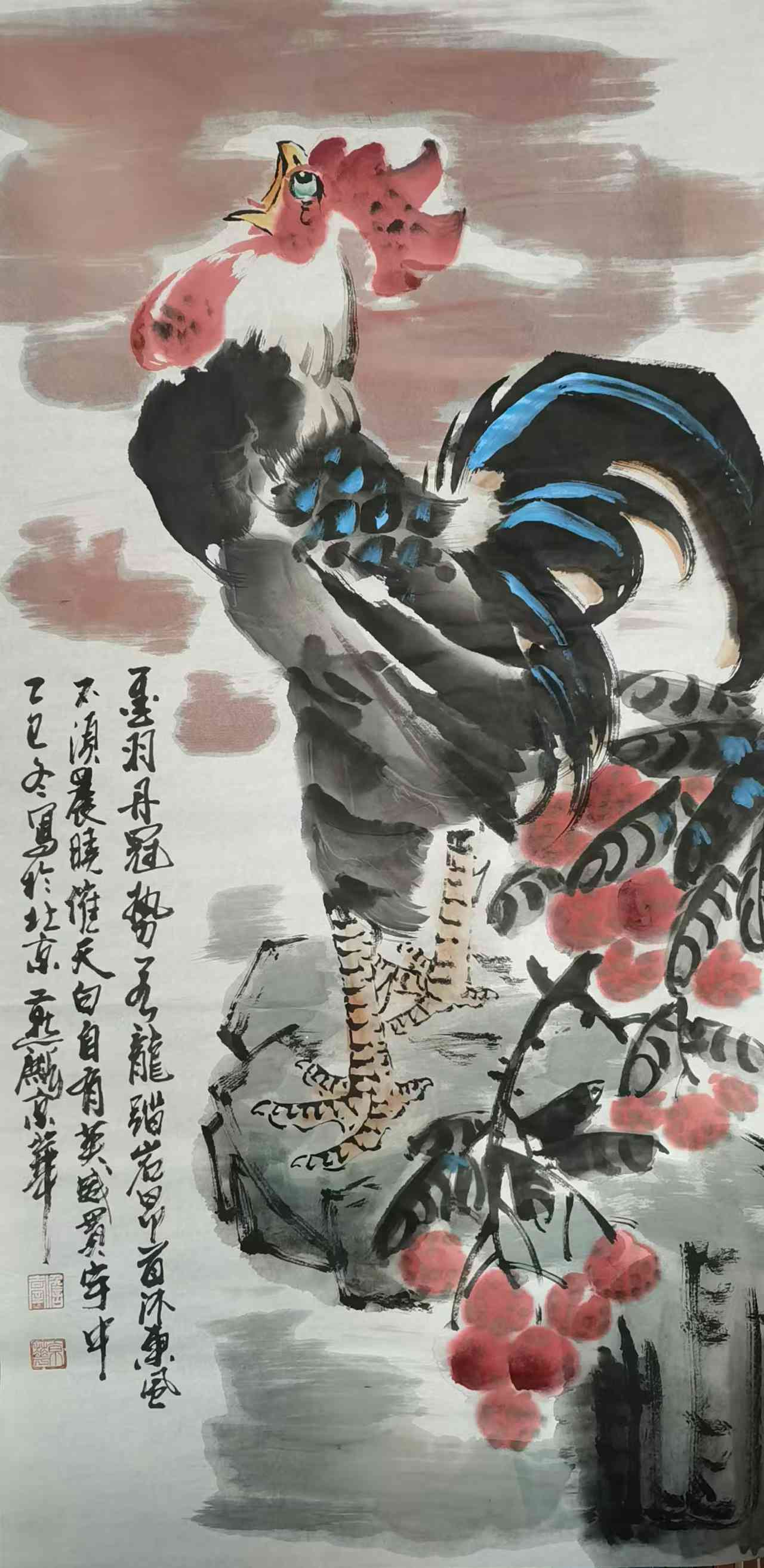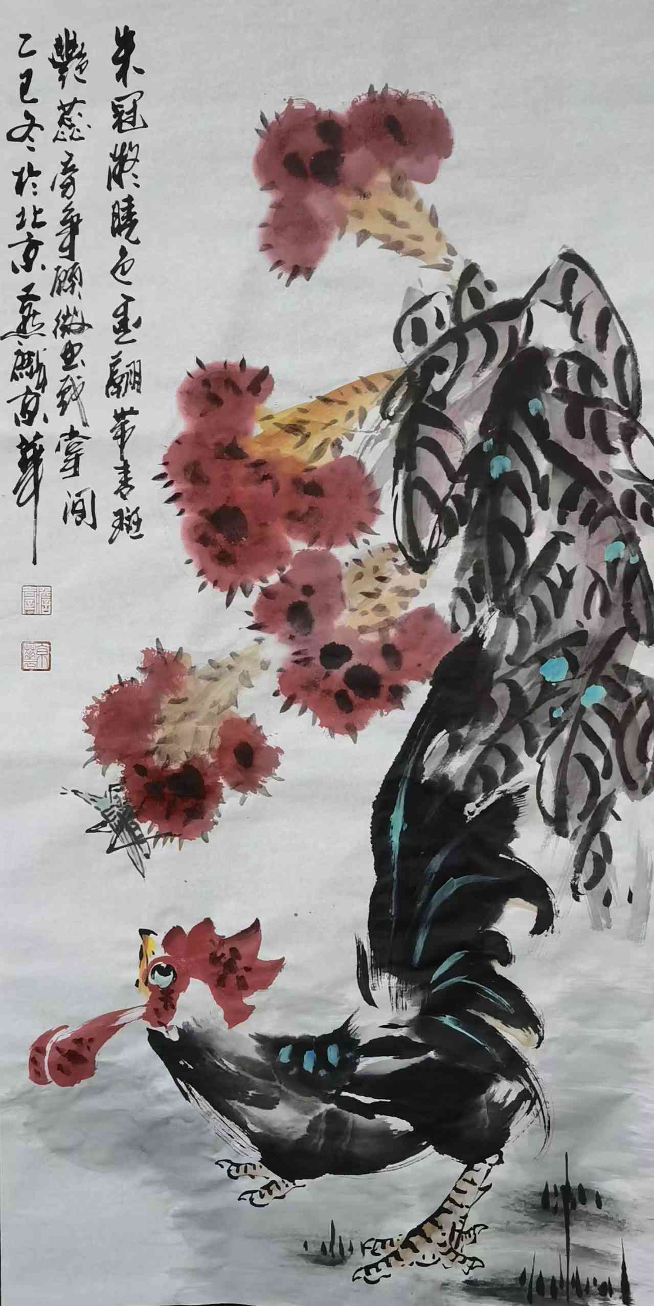 其构图开合大气、章法严谨,大画气势恢宏、格局万千,小画精致凝练、小中见大,虚实相生、疏密有致,于有限尺幅之内营造无限天地。他师法自然、扎根生活,将天地万物的生机与精神注入笔端,既恪守中国画写意内核,又兼具写实的生动质感,真正做到形神兼备、气韵生动。色彩运用典雅明快、和谐自然,艳而不俗、淡而有味,在传统韵味之上融入现代审美,使作品古意盎然又兼具时代气息,雅俗共赏、耐人寻味。