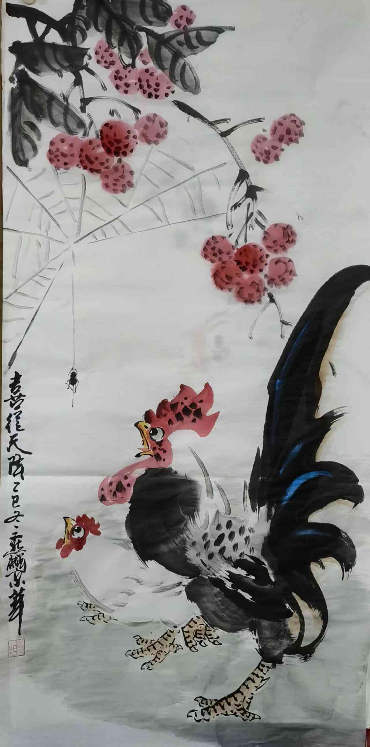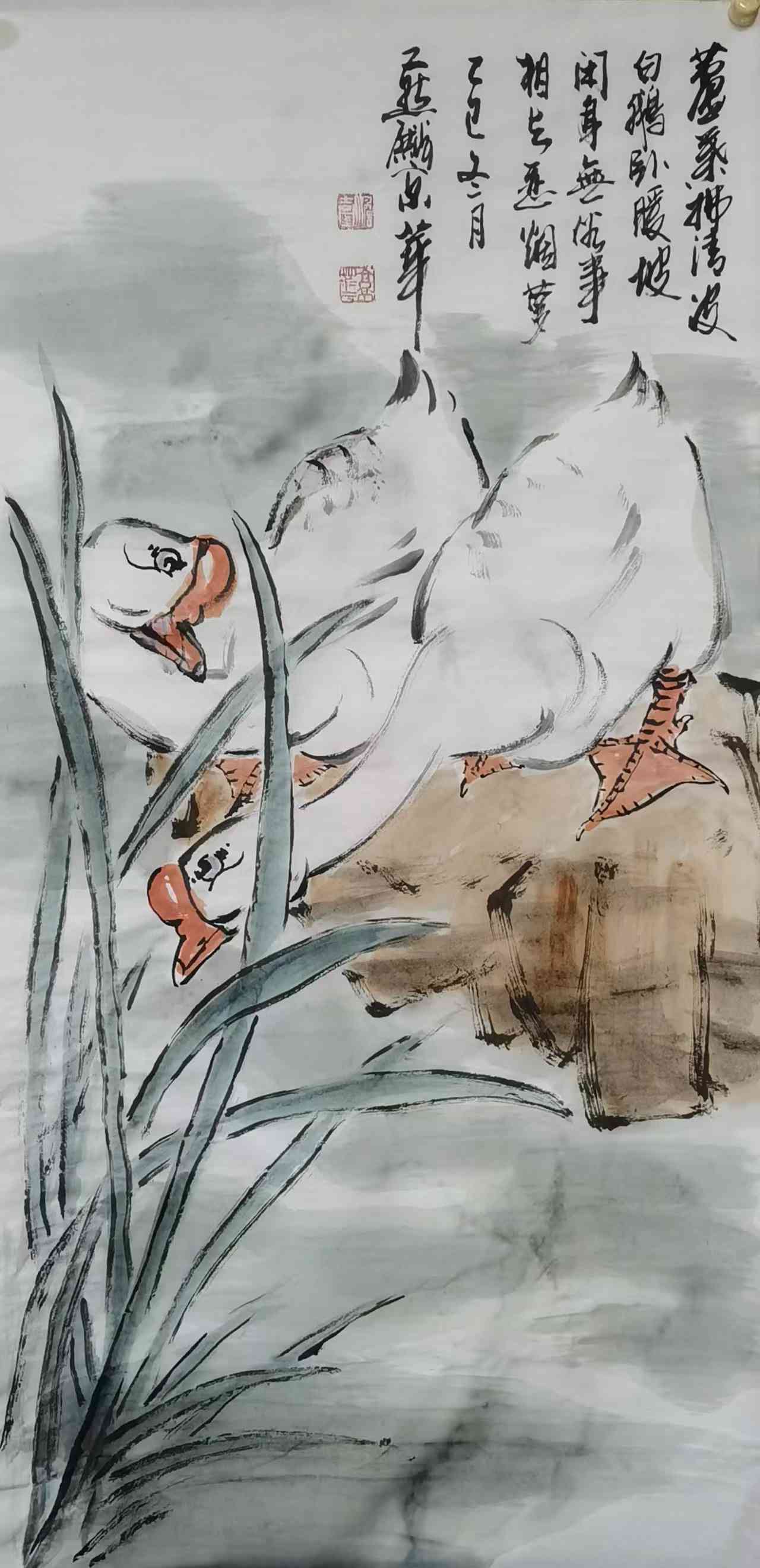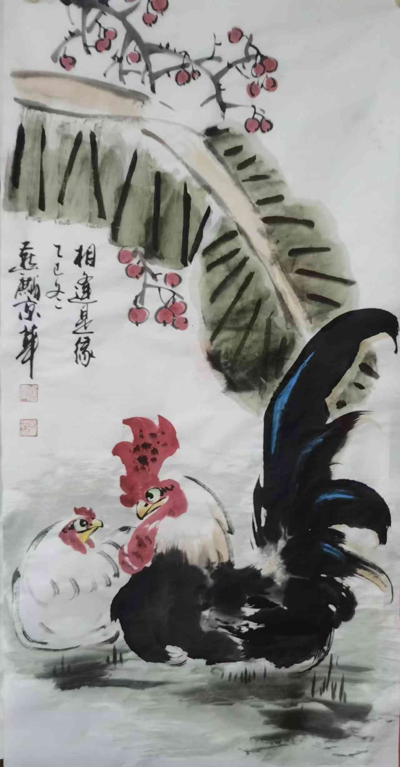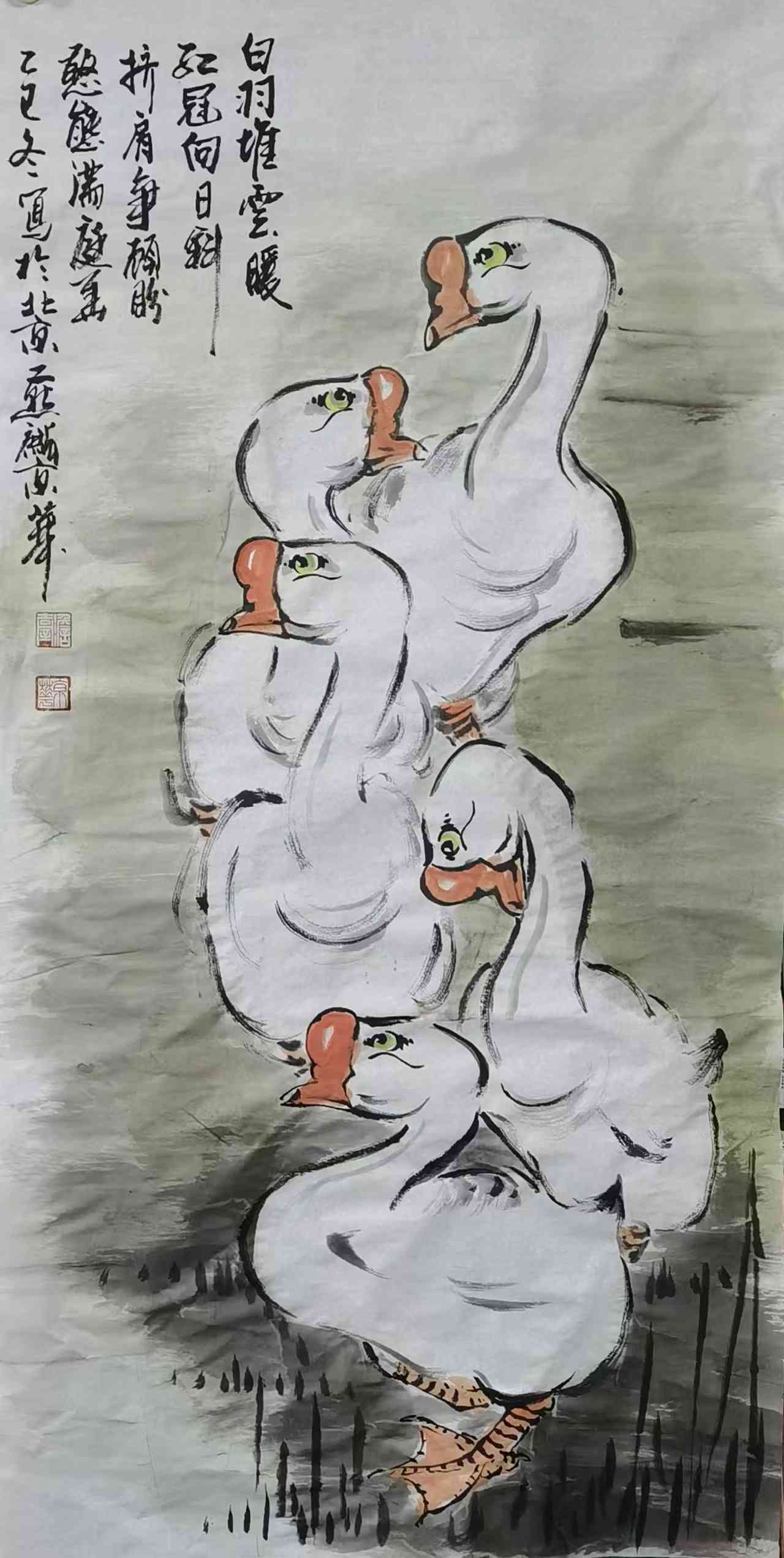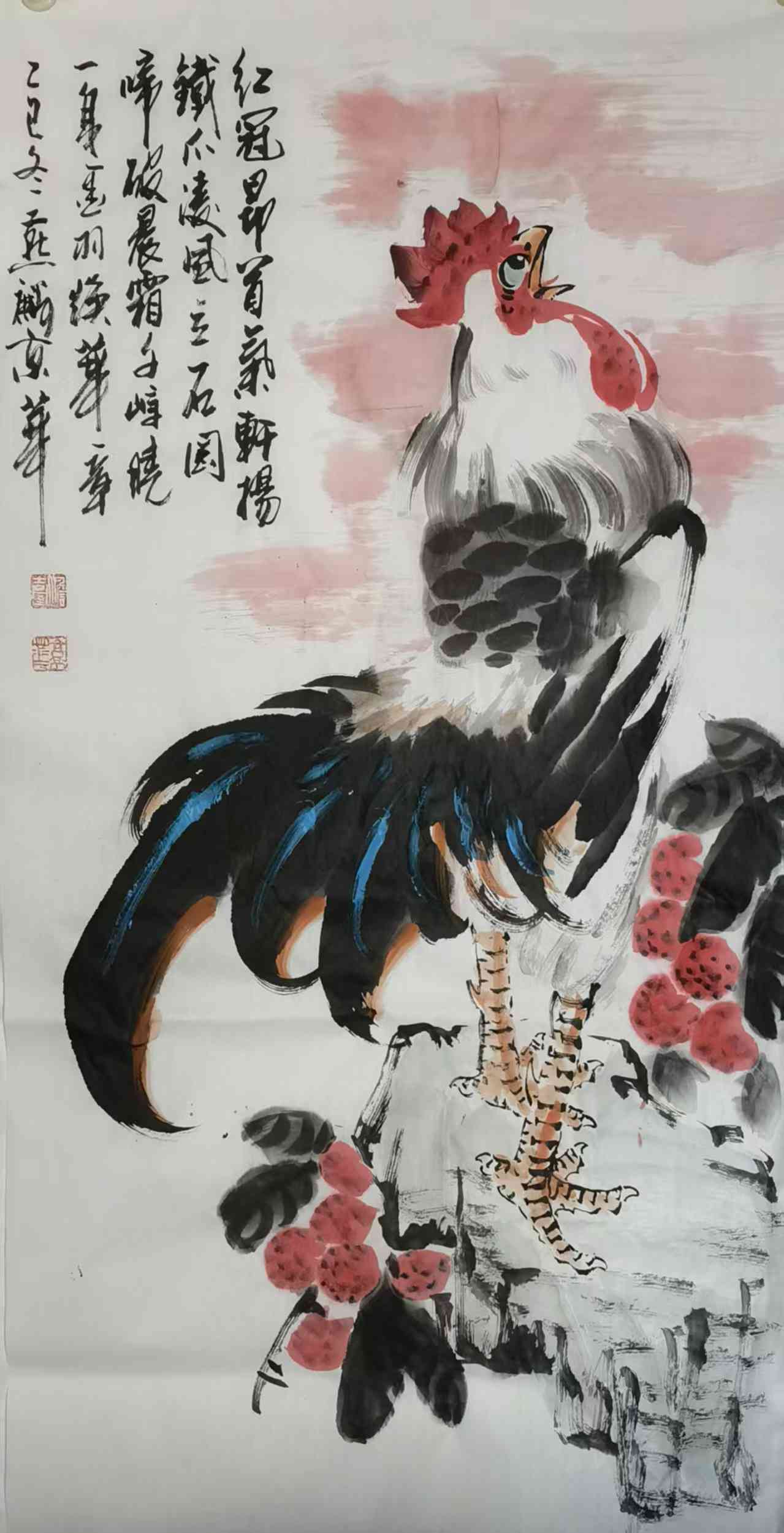 其构图开合大气、章法严谨,大画气势恢宏、格局万千,小画精致凝练、小中见大,虚实相生、疏密有致,于有限尺幅之内营造无限天地。他师法自然、扎根生活,将天地万物的生机与精神注入笔端,既恪守中国画写意内核,又兼具写实的生动质感,真正做到形神兼备、气韵生动。色彩运用典雅明快、和谐自然,艳而不俗、淡而有味,在传统韵味之上融入现代审美,使作品古意盎然又兼具时代气息,雅俗共赏、耐人寻味。