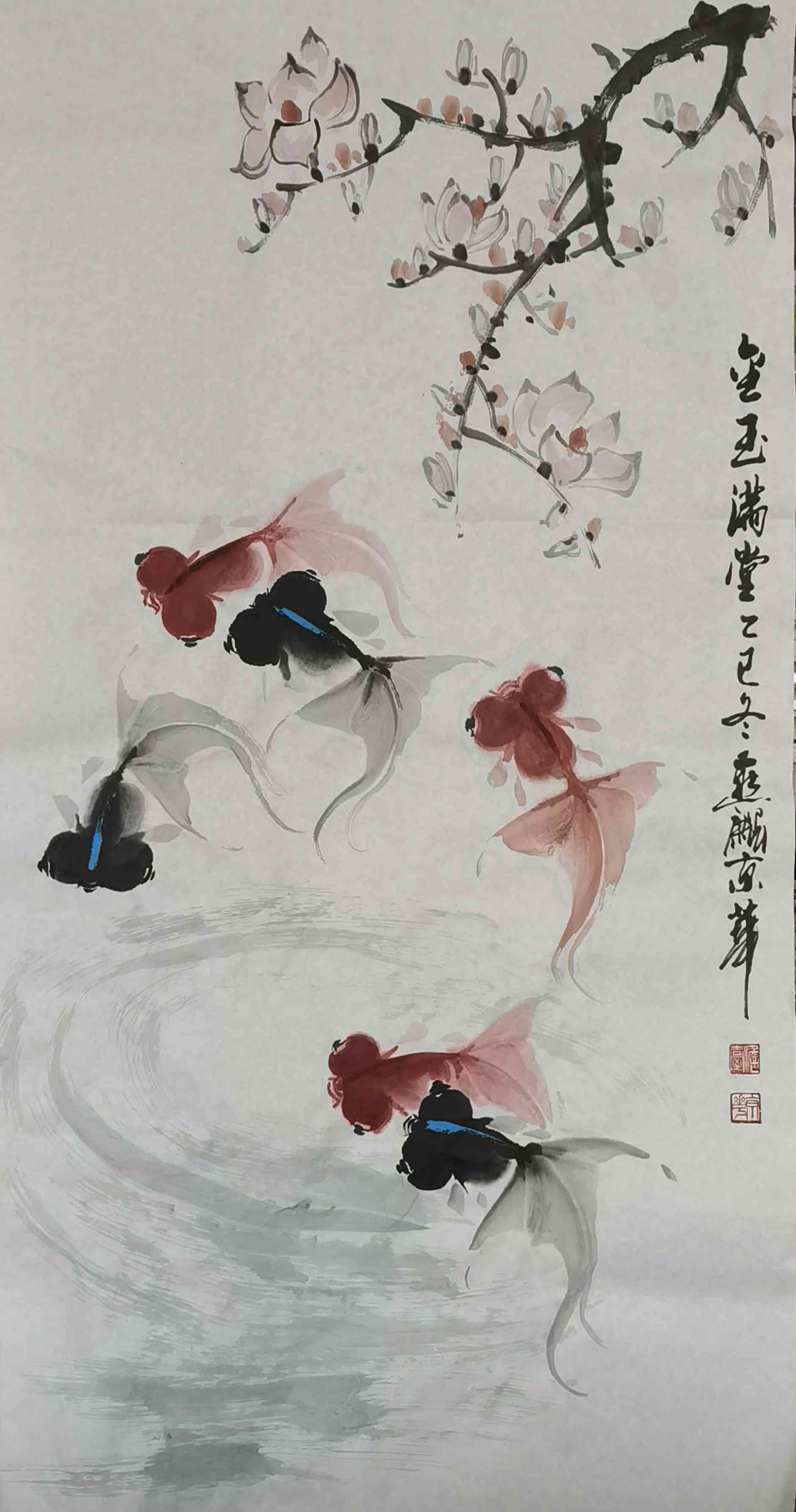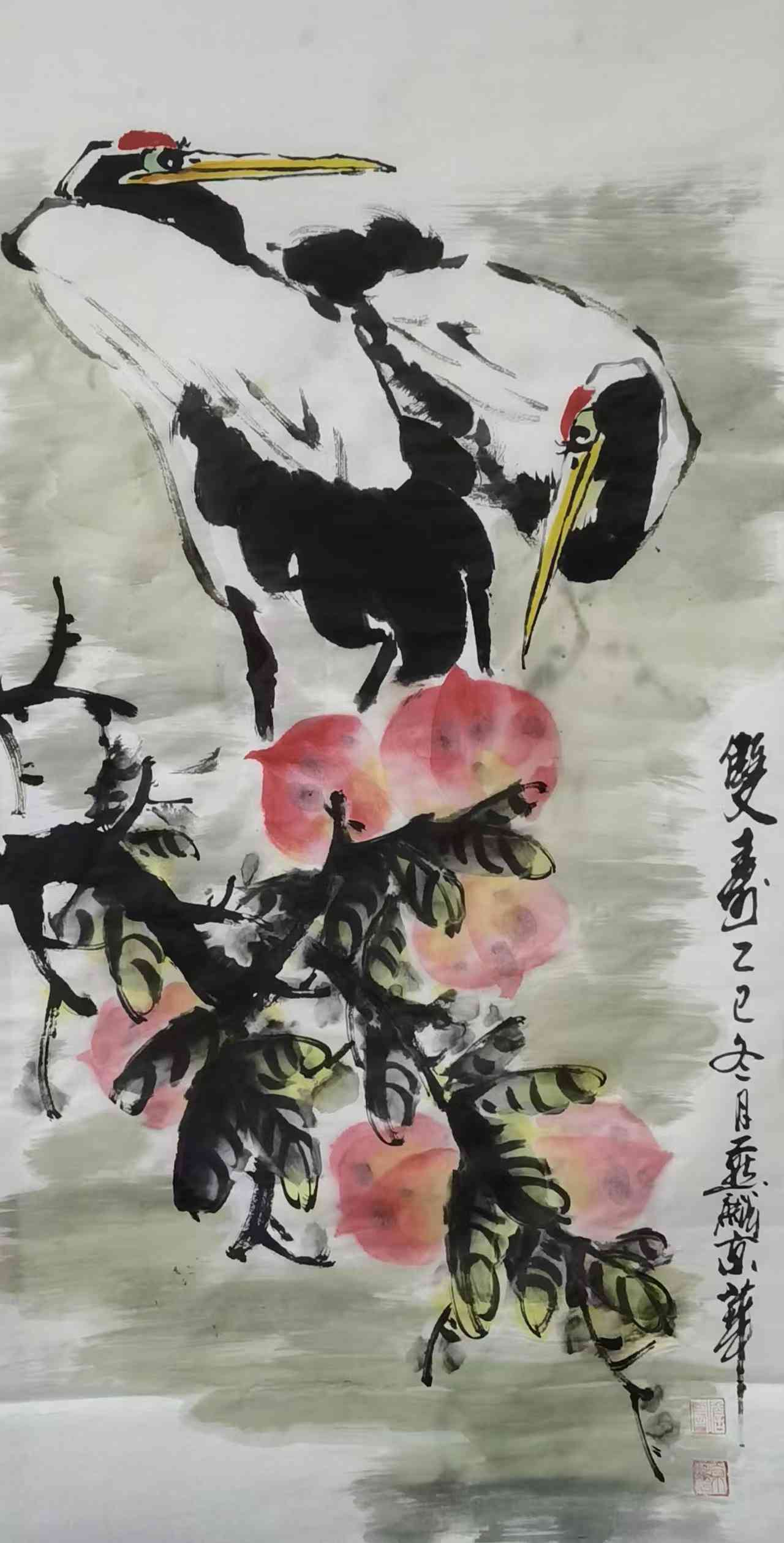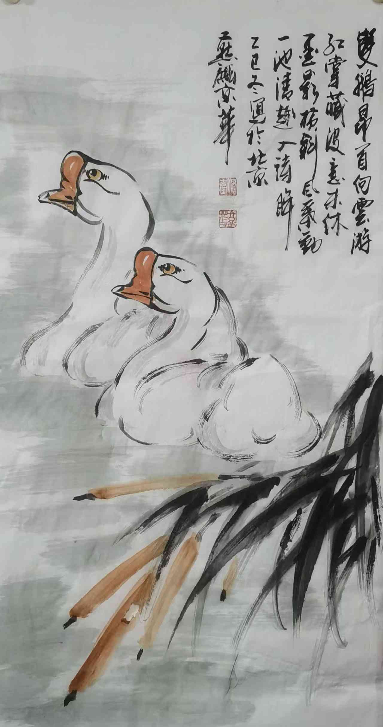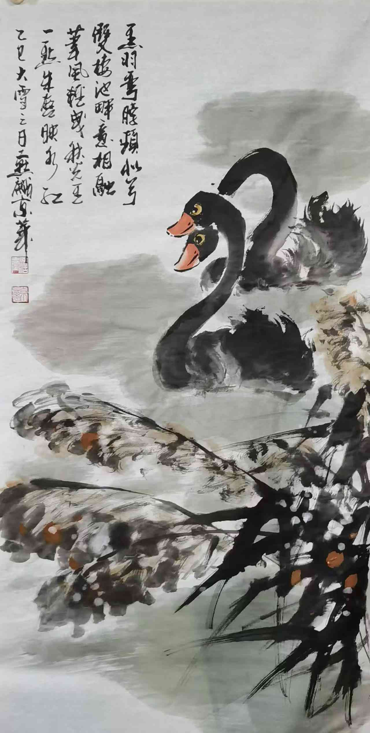 其构图开合大气、章法严谨,大画气势恢宏、格局万千,小画精致凝练、小中见大,虚实相生、疏密有致,于有限尺幅之内营造无限天地。他师法自然、扎根生活,将天地万物的生机与精神注入笔端,既恪守中国画写意内核,又兼具写实的生动质感,真正做到形神兼备、气韵生动。色彩运用典雅明快、和谐自然,艳而不俗、淡而有味,在传统韵味之上融入现代审美,使作品古意盎然又兼具时代气息,雅俗共赏、耐人寻味。